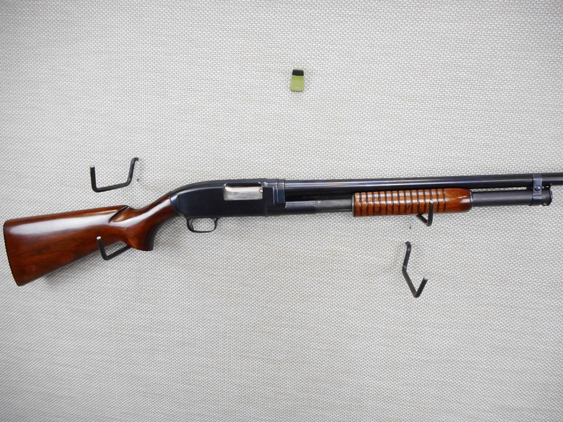 WINCHESTER , MODEL: 12 , CALIBER: 12GA X 2 3/4" , MANUFACTURED IN 1950, FIXED FULL CHOKE, BORE IS GOOD, BEAD FRONT SIGHT, APPEARS TO HAVE BEEN REFINISHED, PLASTIC BUTT PLATE, TWO PIECE HARDWOOD STOCK , STOCK # 9770 , SERIAL # 1417824 , ACTION: PUMP ACTION SHOTGUN , BARREL LENGTH: 30" , CONDITION: 7/10 , CLASS: CLASS: CANADIAN NON RESTRICTED CLASS