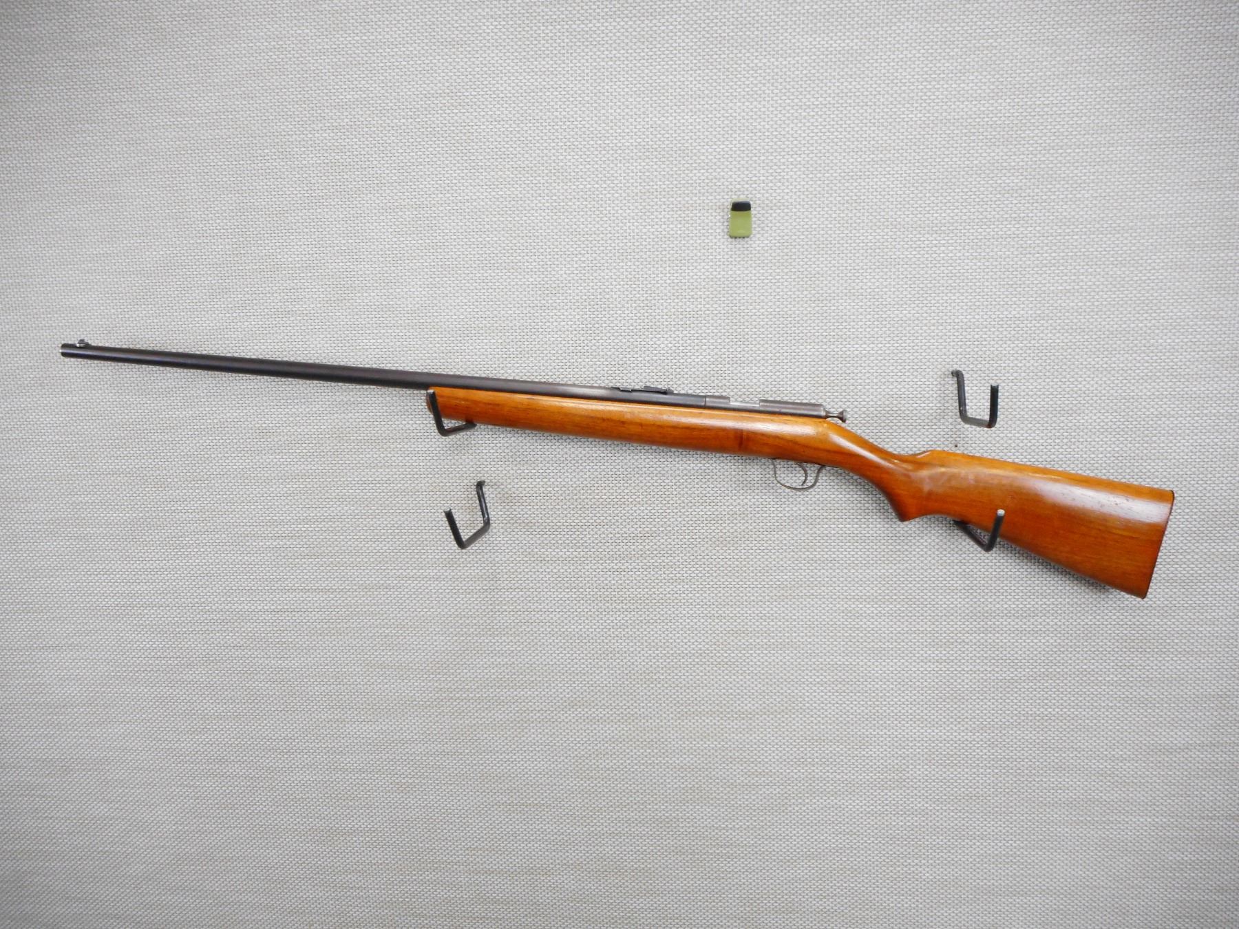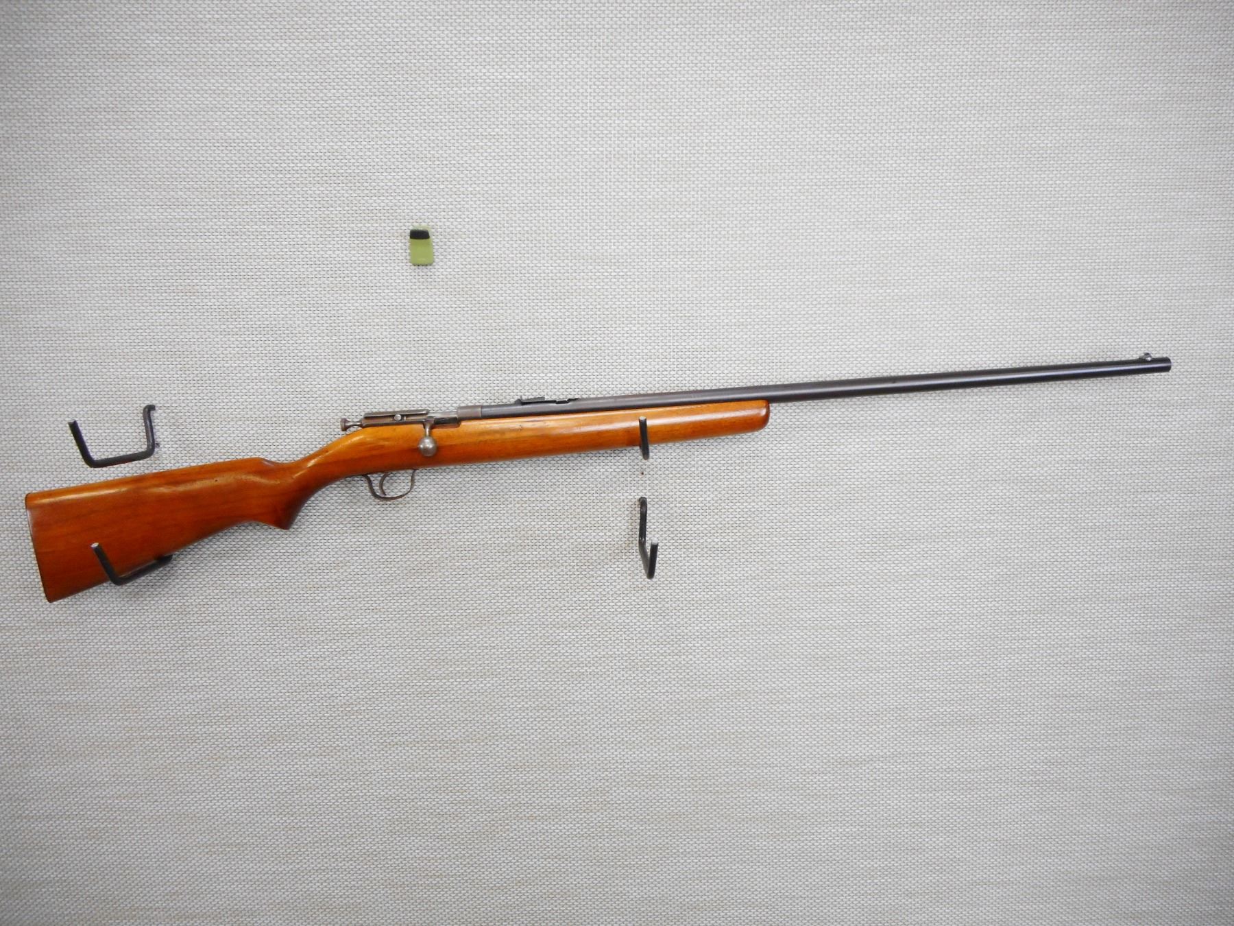 COOEY , MODEL: MOHAWK , CALIBER: 22 LR , GOOD BORE, BLADE FRONT AND ADJUSTABLE REAR SIGHT, ONE PIECE HARDWOOD STOCK APPEARS TO BE REVARNISHED, STEEL BUTT PLATE, SHOWS SOME HANDLING MARKS , STOCK # 9783 , SERIAL # N/A , ACTION: BOLT ACTION SINGLE SHOT RIFLE , BARREL LENGTH: 27" , CONDITION: 6/10 , CLASS: CLASS: CANADIAN NON RESTRICTED CLASS