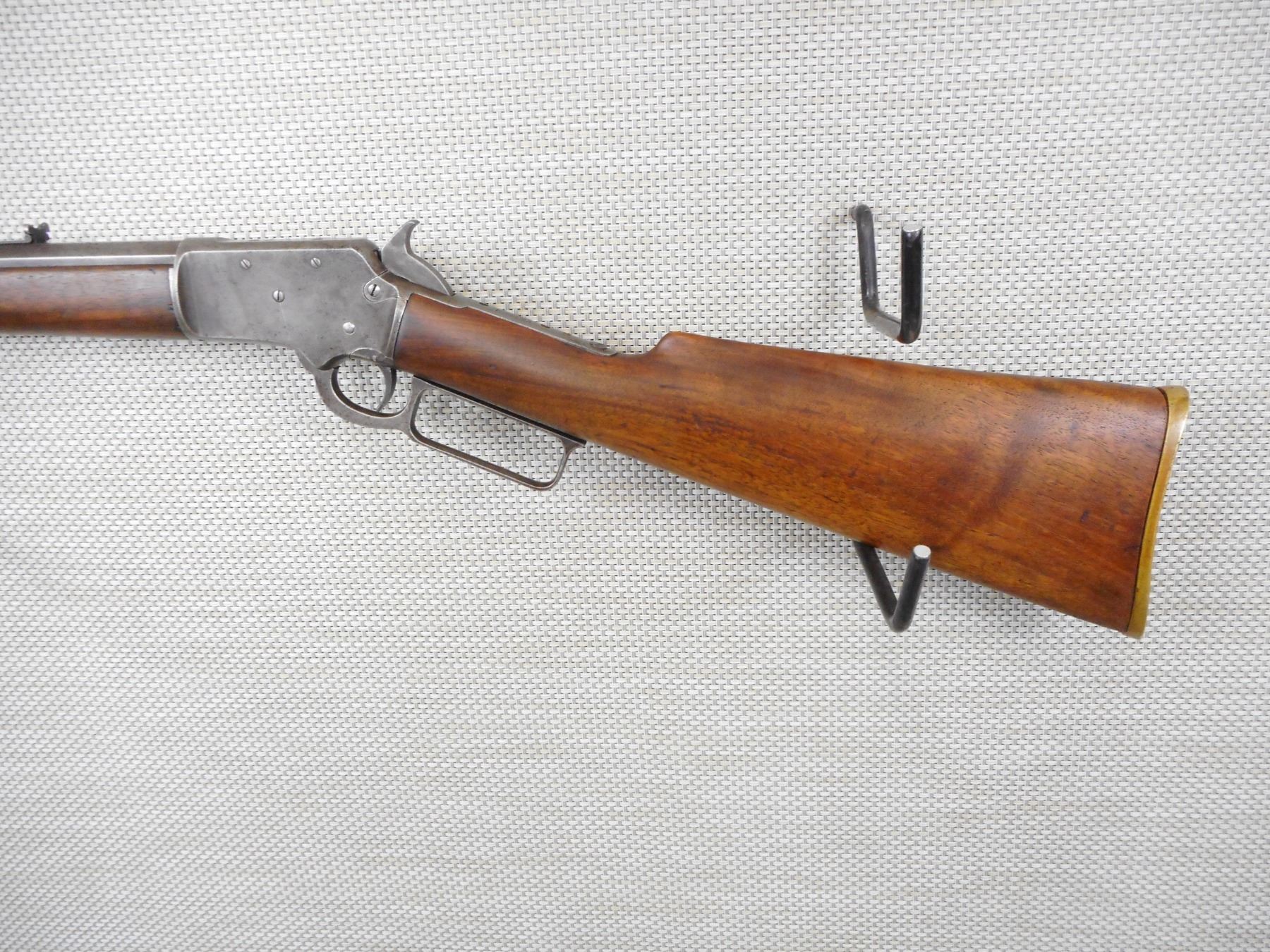 MARLIN , MODEL: 97 , CALIBER: 22 LR , BORE IS GOOD, BLADE FRONT AND ADJUSTABLE REAR SIGHT WITH AN OCTAGONAL BARREL, TWO PIECE HARDWOOD STOCK WITH REPLACED BUTT PLATE, BUTT STOCK HAS BEEN REPAIRED AT THE HEEL, SHOWS EXTENSIVE HANDLING MARKS , STOCK # 9953 , SERIAL # 427315 , ACTION: LEVER ACTION RIFLE , BARREL LENGTH: 24" , CONDITION: 4/10 , CLASS: CLASS: CANADIAN NON RESTRICTED CLASS