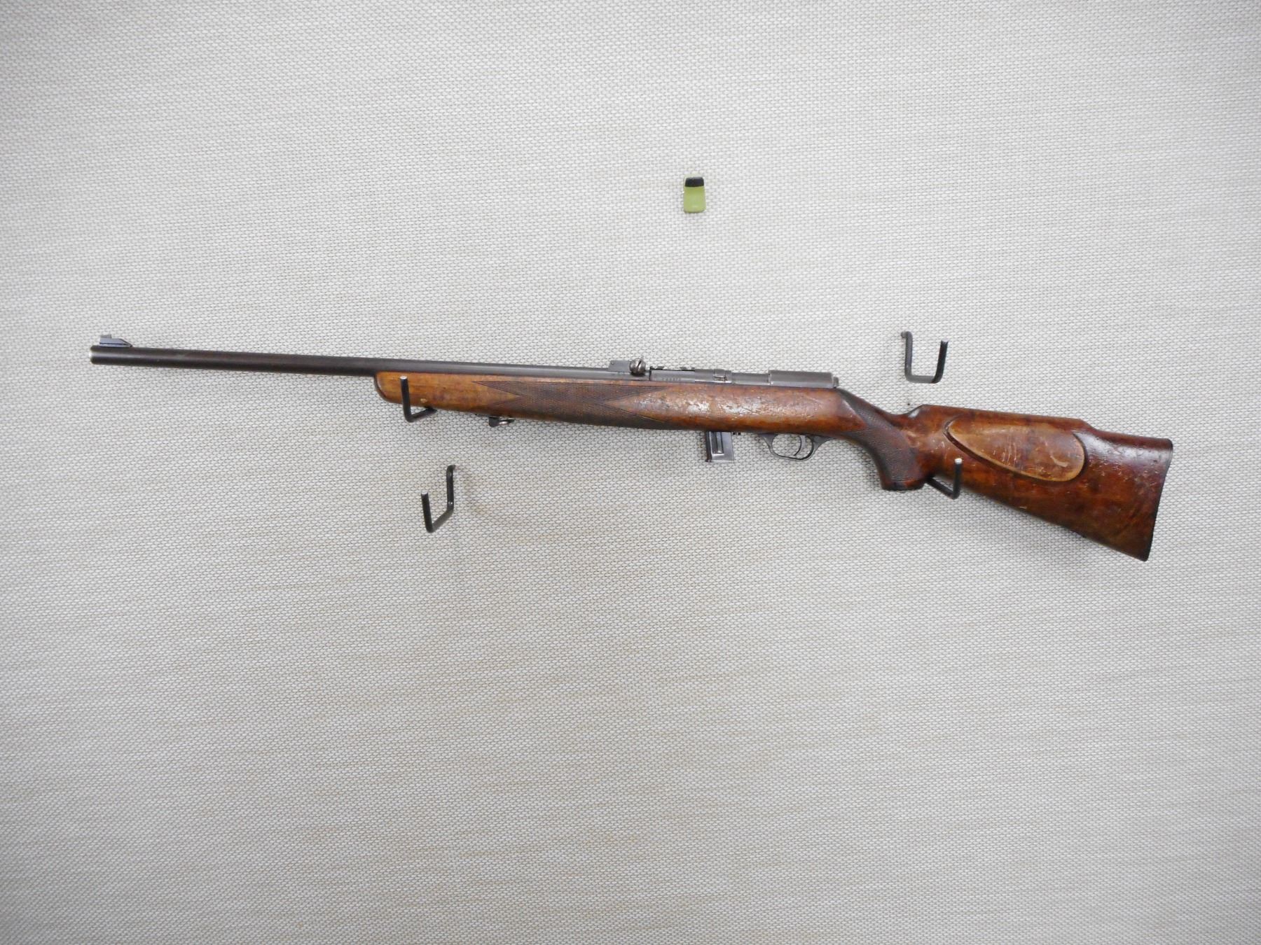 BERETTA , MODEL: OLIMPIA SUPER SPORT , CALIBER: 22 LR , COMES WITH MAGAZINE, BORE IS GOOD, BLADE FRONT AND ADJUSTABLE REAR SIGHT, ONE PIECE CHECKERED FOREDND AND CAPPED PISTOL GRIP BUTT STOCK WITH RAISED CHEEK PIECE, EXTENSIVE HANDLING MARKS, PLASTIC BUTT PLATE, MISSING THE REAR SLING SWIVEL AND SCREWS, UNIQUE SEMI AUTO WITH A BOLT ACTION FEATURE , STOCK # 10049 , SERIAL # D23373 , ACTION: SEMI AUTOMATIC RIFLE , BARREL LENGTH: 23" , CONDITION: 5/10 , CLASS: CLASS: CANADIAN NON RESTRICTED CLASS