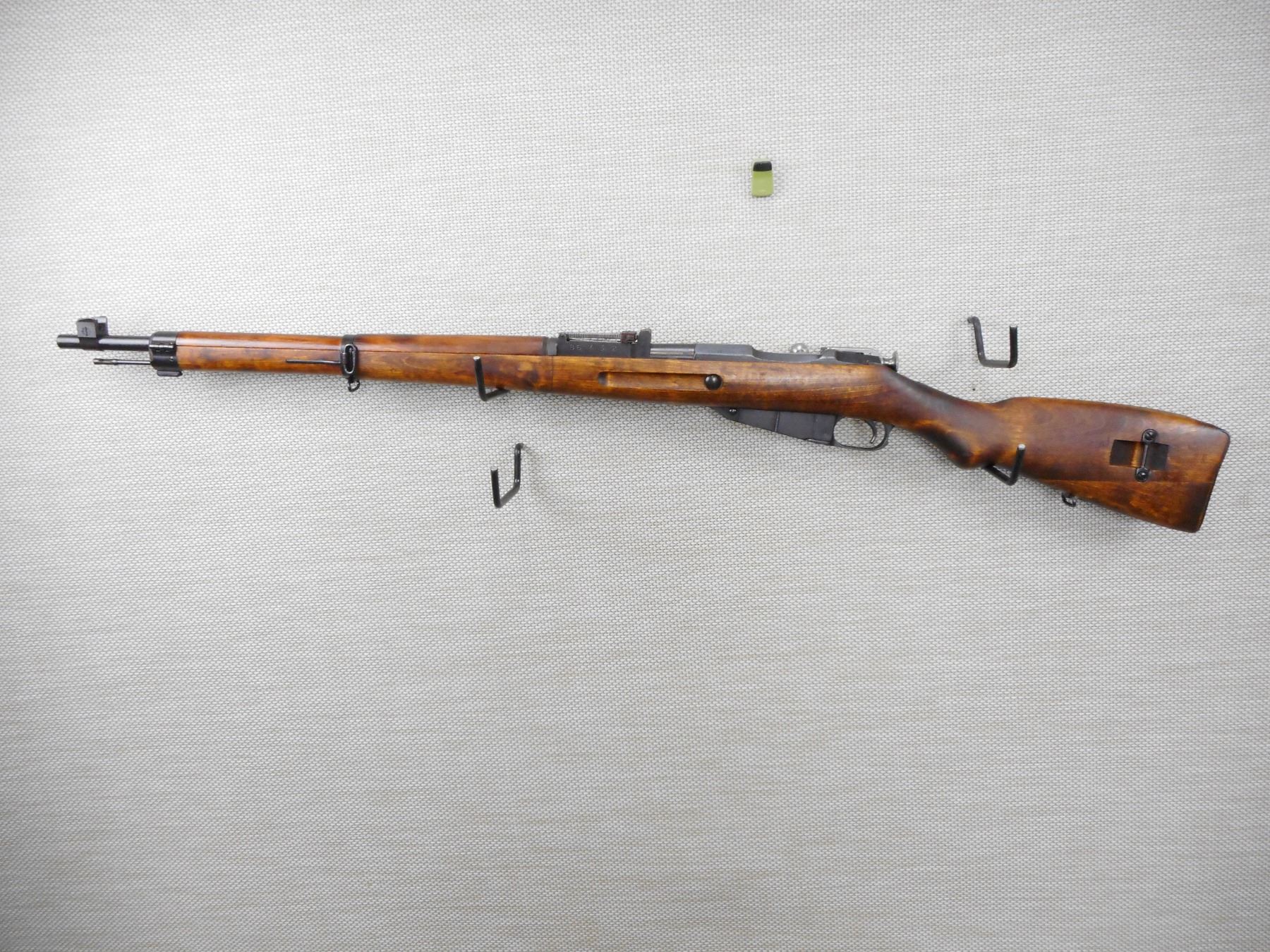 MOSIN NAGANT , MODEL: 39 FINNISH , CALIBER: 7.62 X 54R ,DATED 1941, SA MARKED, BARREL, WITH FINNISH FINGER JOINTED STOCK, MANUFACTURED BY VKT, BORE IS GOOD WITH LIGHT FROSTING, BARLEY CORN FRONT AND ADJUSTABLE REAR SIGHTS, RETAINS FULL MILITARY CONFIGURATION, SLING SWIVEL LOOPS, STEEL BUTT PLATE , STOCK # 10124 , SERIAL # 31631 , ACTION: BOLT ACTION RIFLE , BARREL LENGTH: 28" , CONDITION: 7/10 , CLASS: CLASS: CANADIAN NON RESTRICTED CLASS