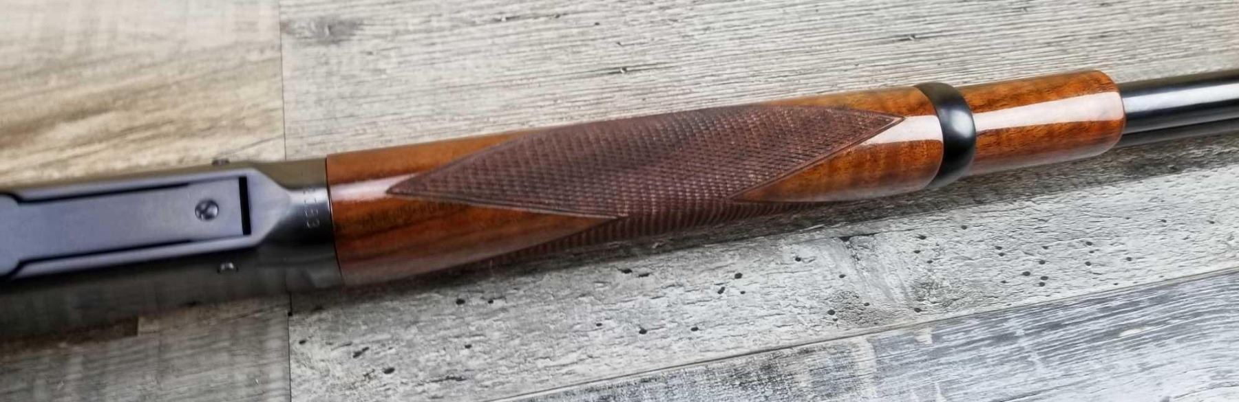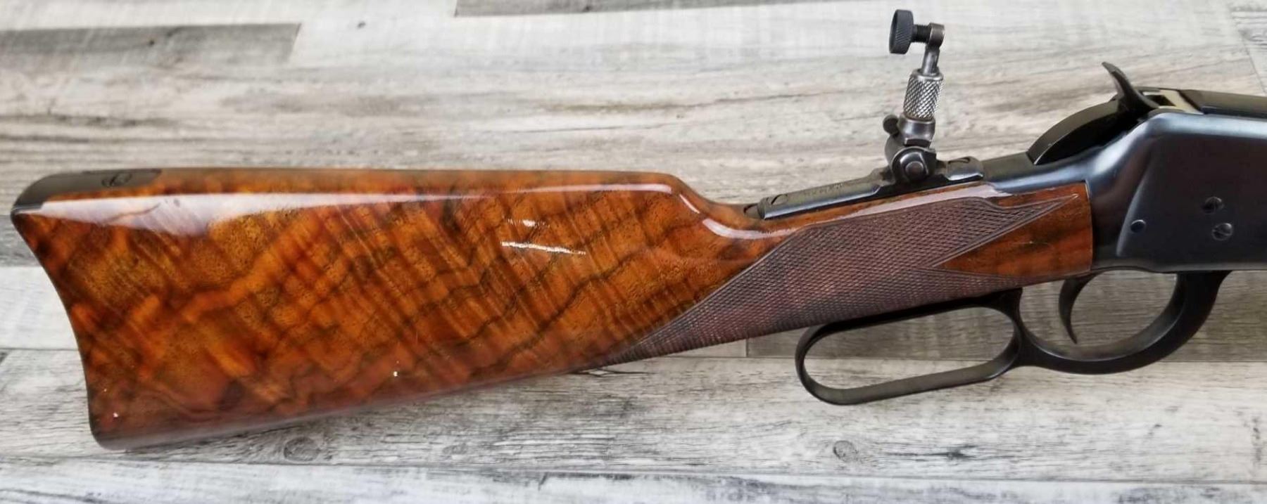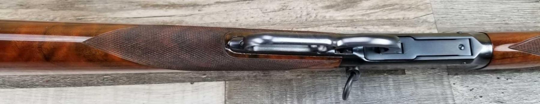 EXCELLENT AS PROFESSIONALLY REFINISHED. UPGRADED WOOD. REAR EXPRESS SIGHTS. BRIGHT BORE. ALSO LYMAN REAR PEEP SIGHT. VERY HANDSOME.