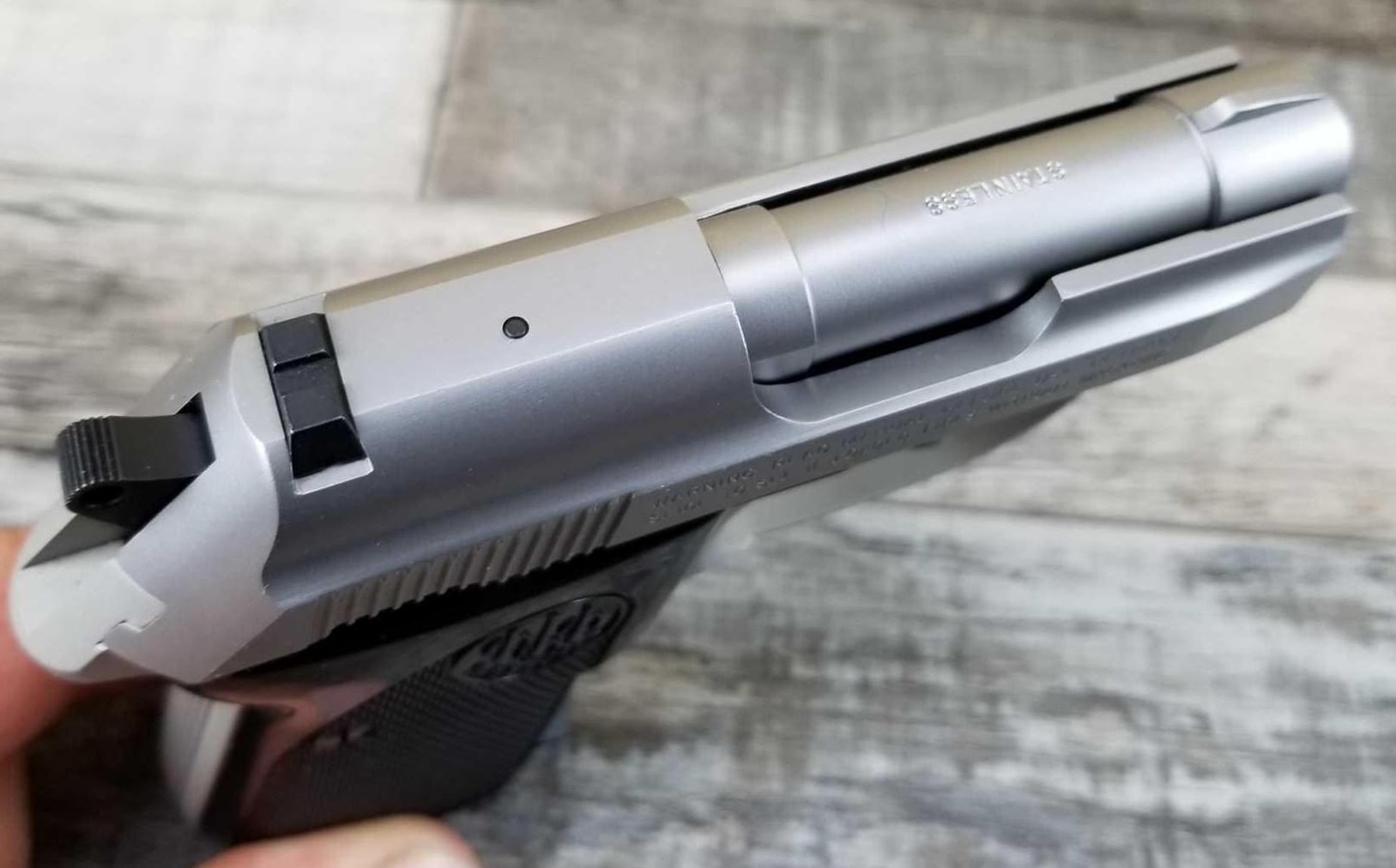 STAINLESS VERSION. APPEARS TO BE AS NEW, IN BOX WITH EXTRA MAG.