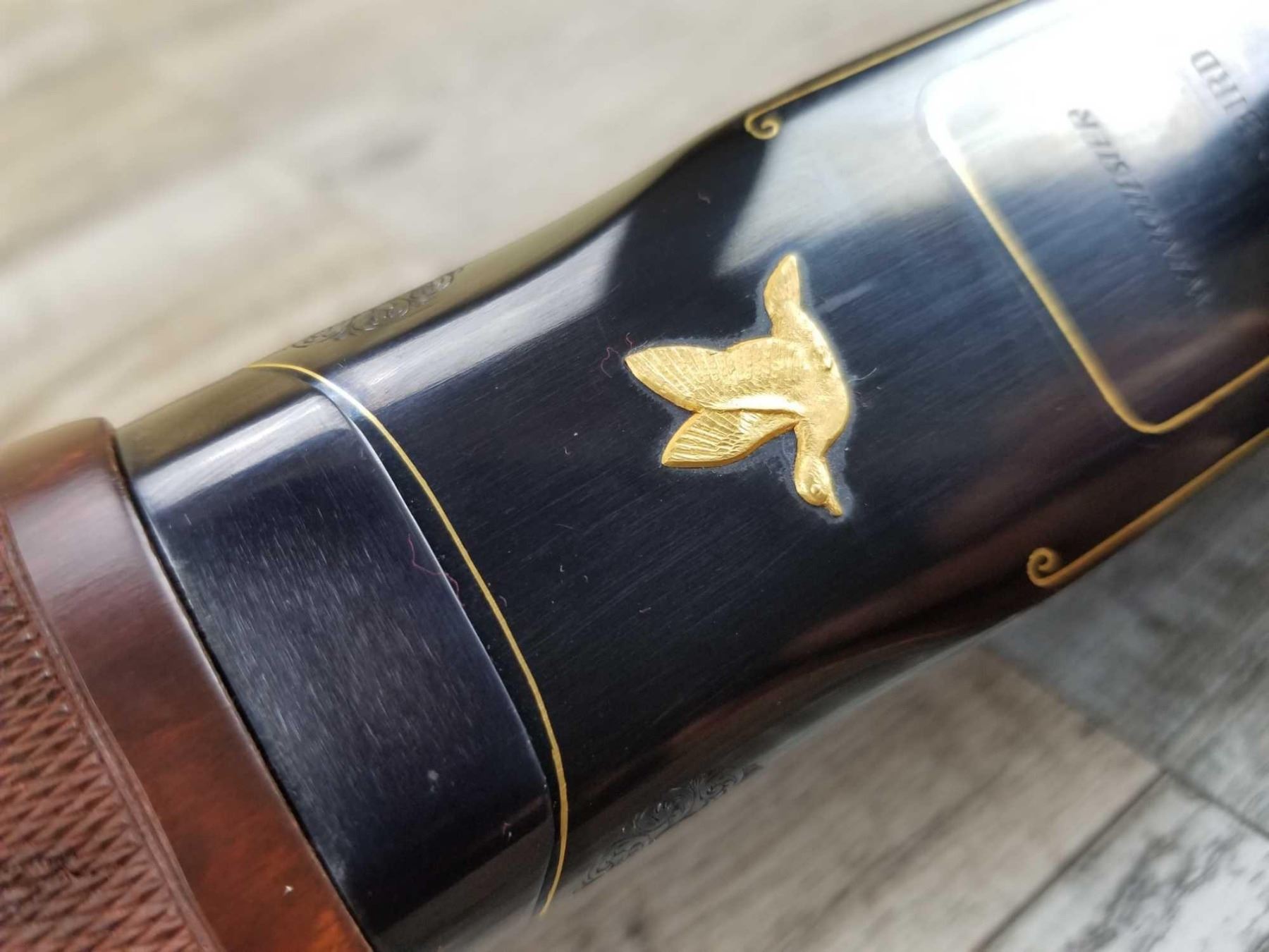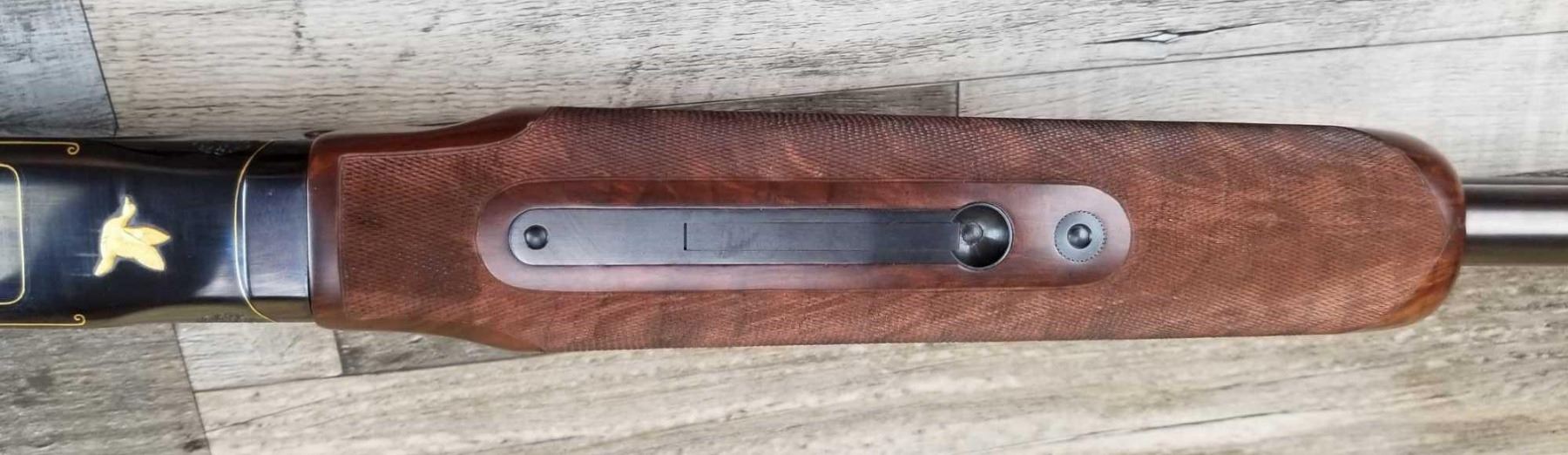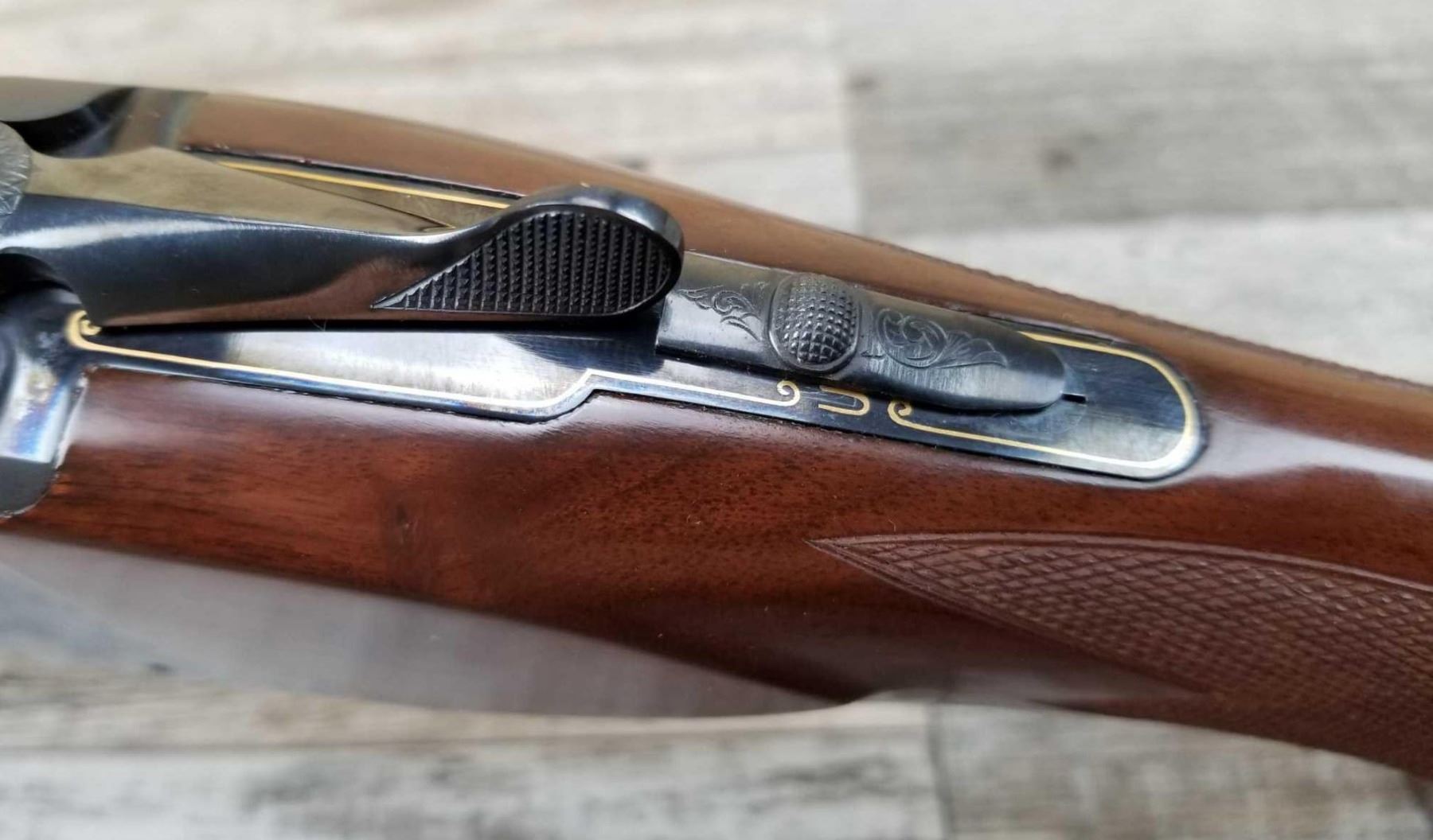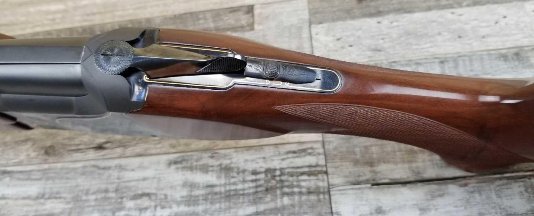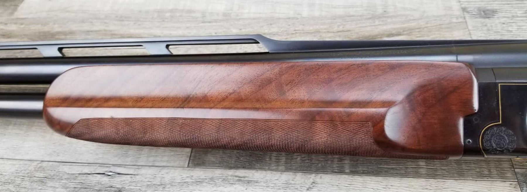 LIGHT ENGRAVING ON RECEIVER. GOLD EMBOSSED BIRD ON UNDERSIDE OF RECEIVER. SPLIT BARRELS. WITH FOUR CHOKE TUBES. LOP 14.5in. AUTO EJECT. MINT BORES. IN HARD CASE.