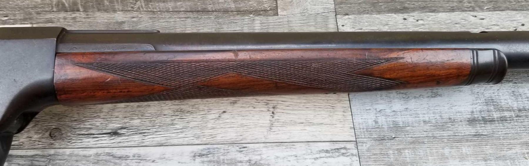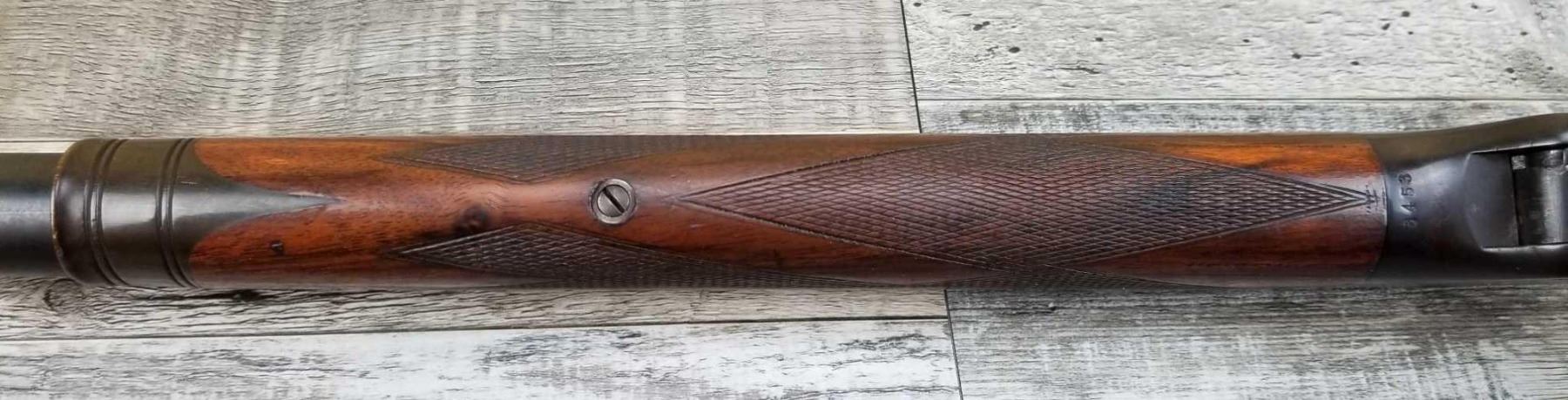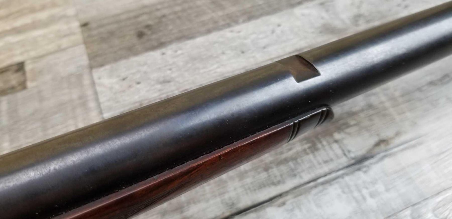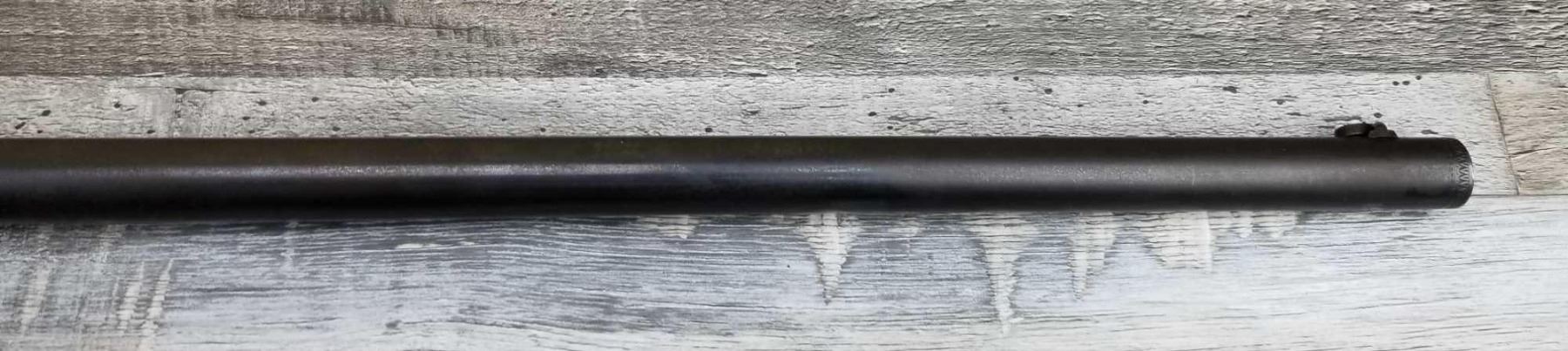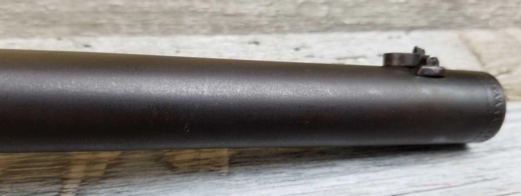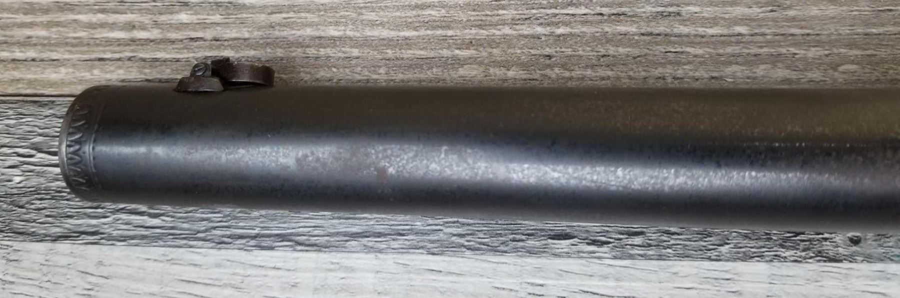 APPEARS TO HAVE AN OLDER REBLUE. GLOBE TYPE FRONT SIGHT. REAR PEEP SIGHT. ORIGINAL REAR SIGHT REMOVED. BORE IS VERY GOOD.