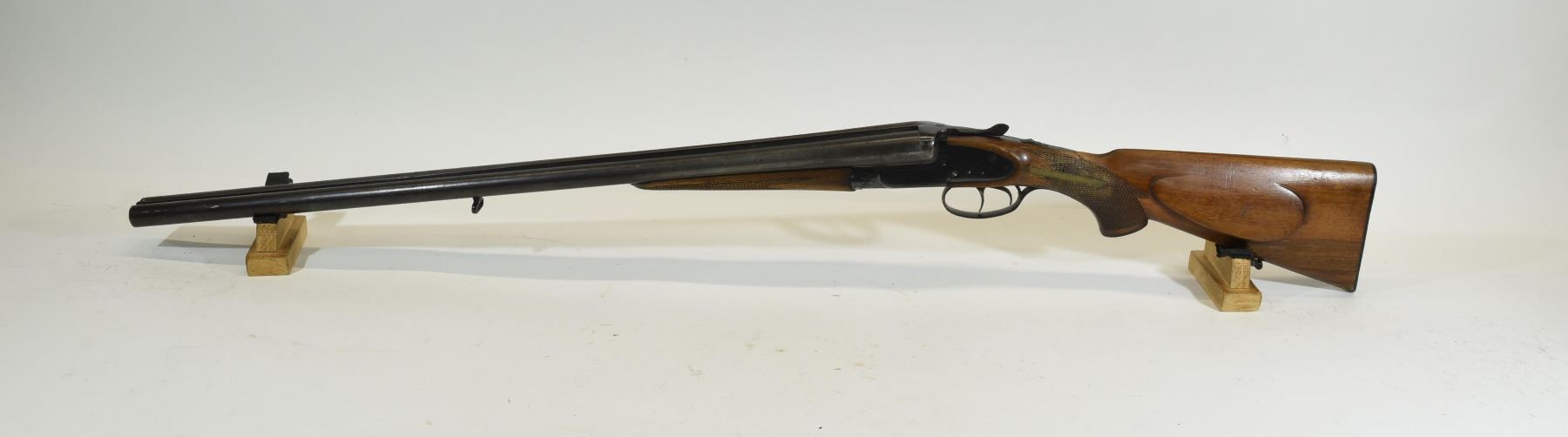 Non restricted, multi barrel, 12Ga x 2 3/4", 28" barrels with fixed chokes (F,M), SN 600003185. Wood repaired through wrist, bluing is grey, rusty on trigger guard, bores have lead streaking. Action is a little loose.
