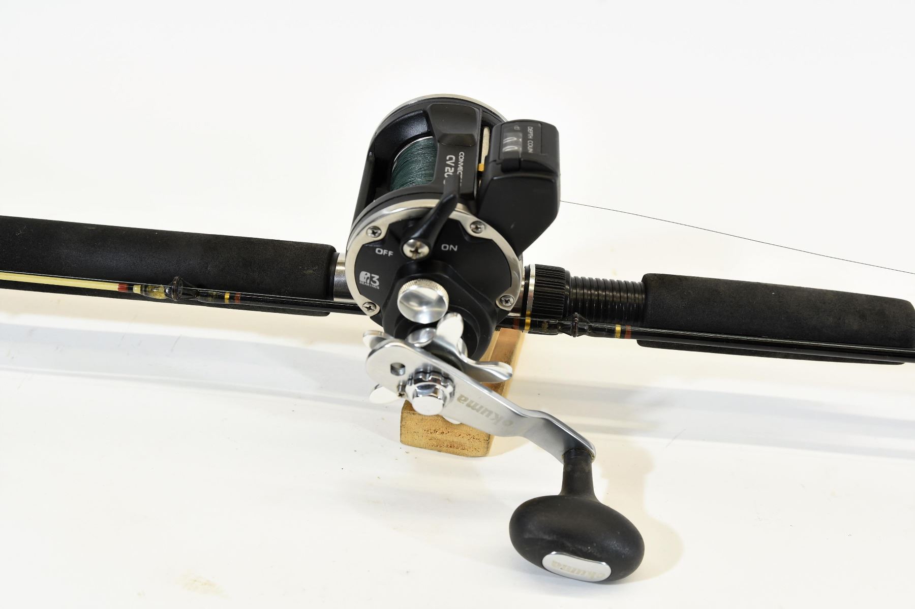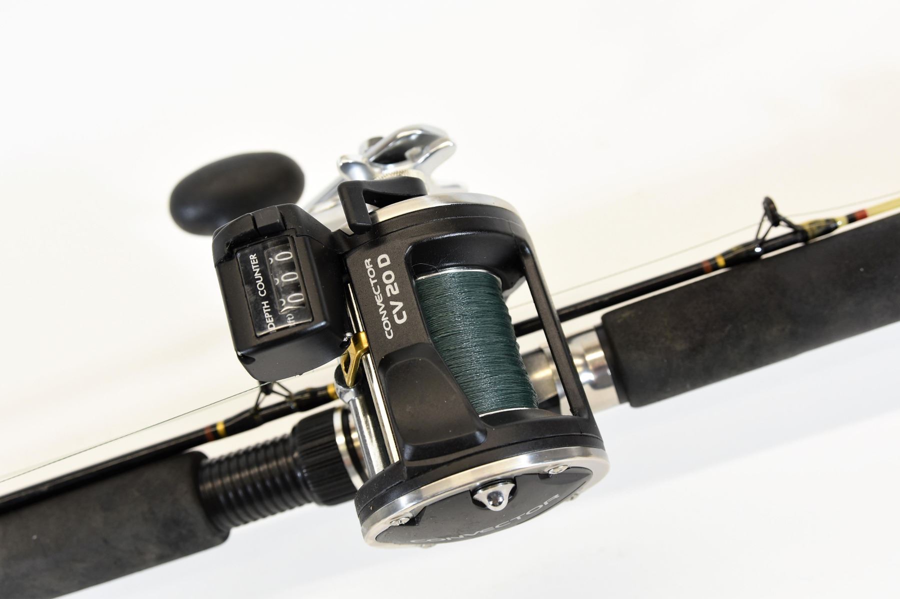 Okuma Convector CV 20 D reel with a Zebco Rhino Glowtip rod, 9 foot pole, 10 - 25 lb line weight, med. action/downrigger, lure wt. 1/8 - 2oz., ideal salmon outfit