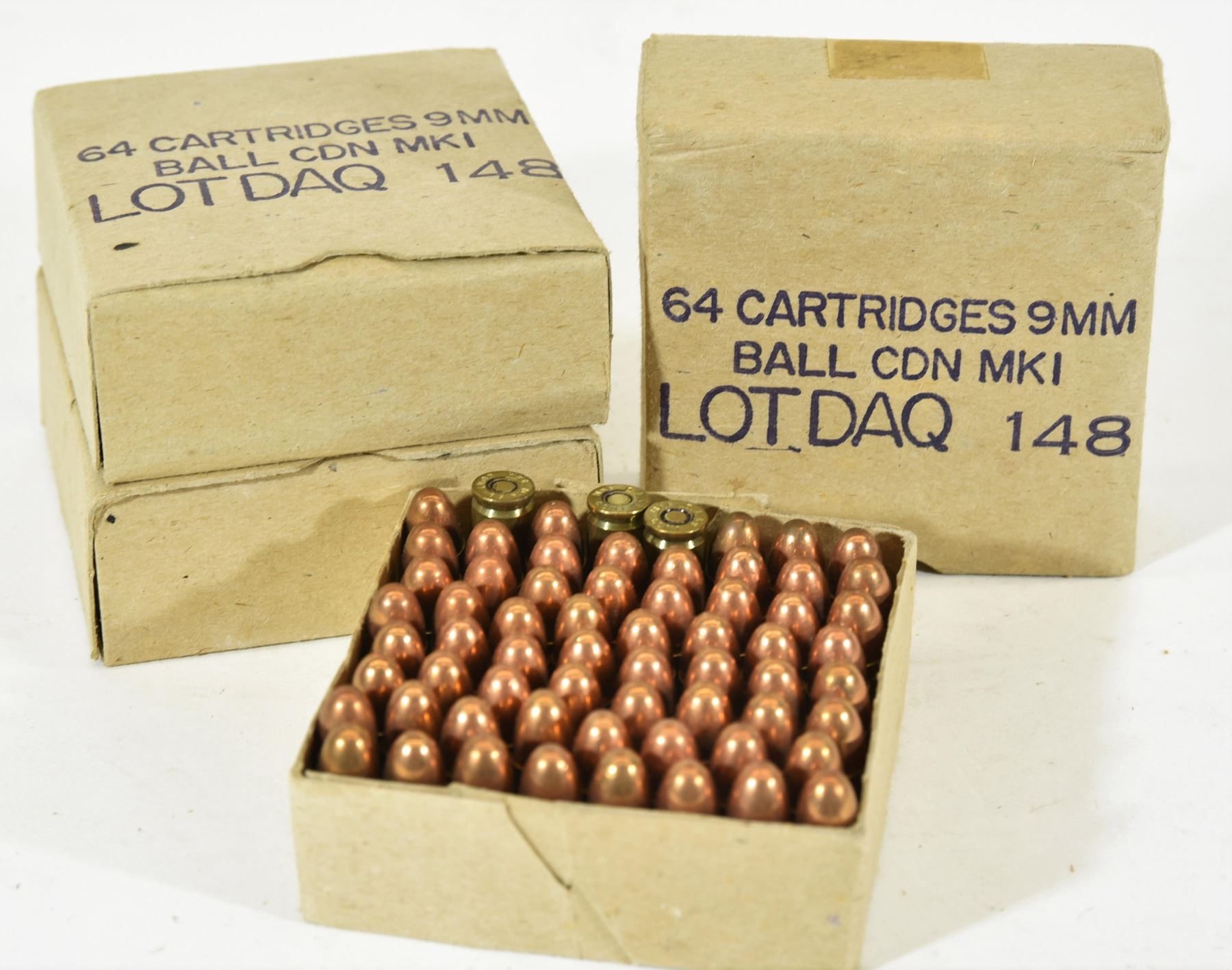 Three boxes of 64 rounds each of 9MM BALL Canadian MKI .