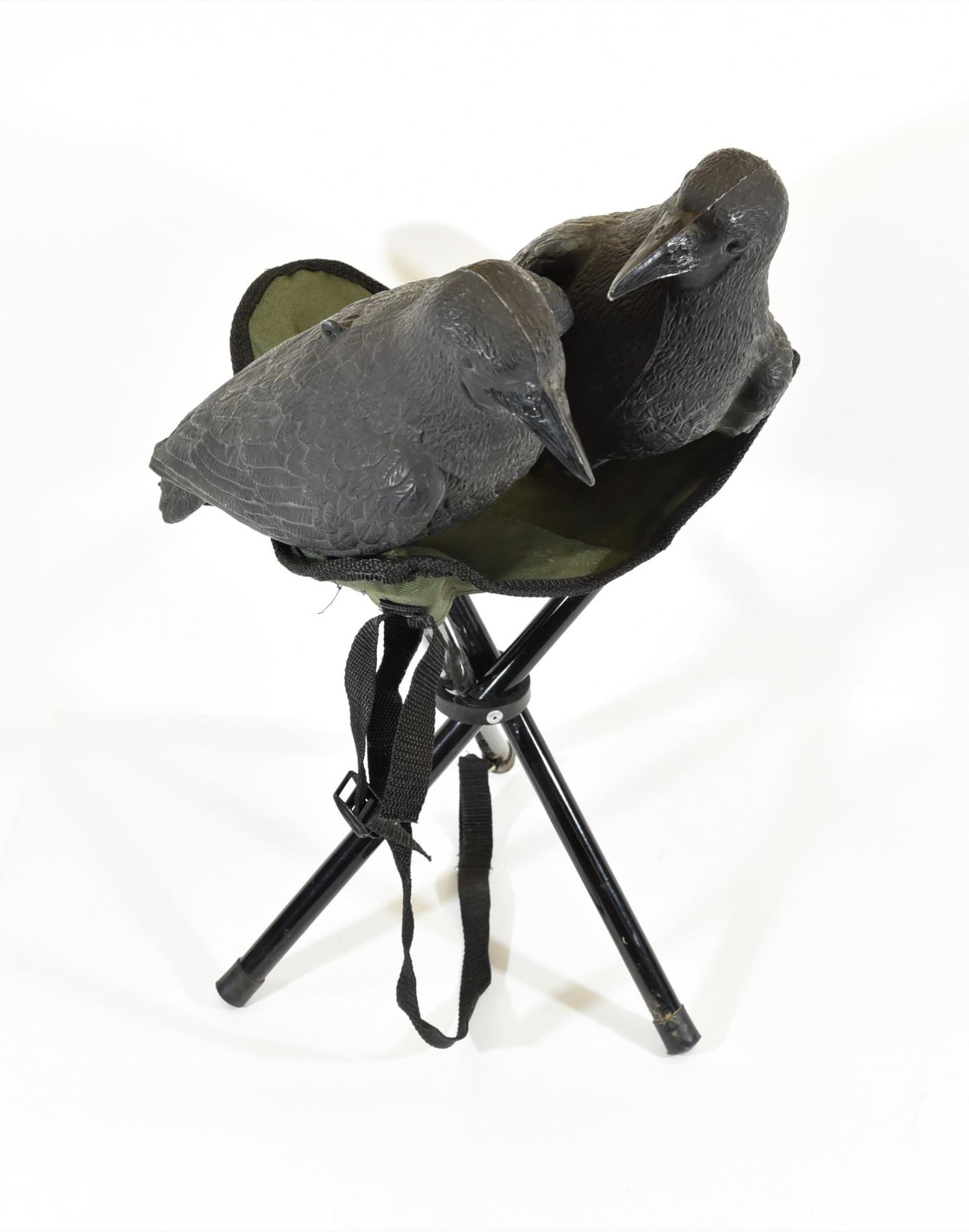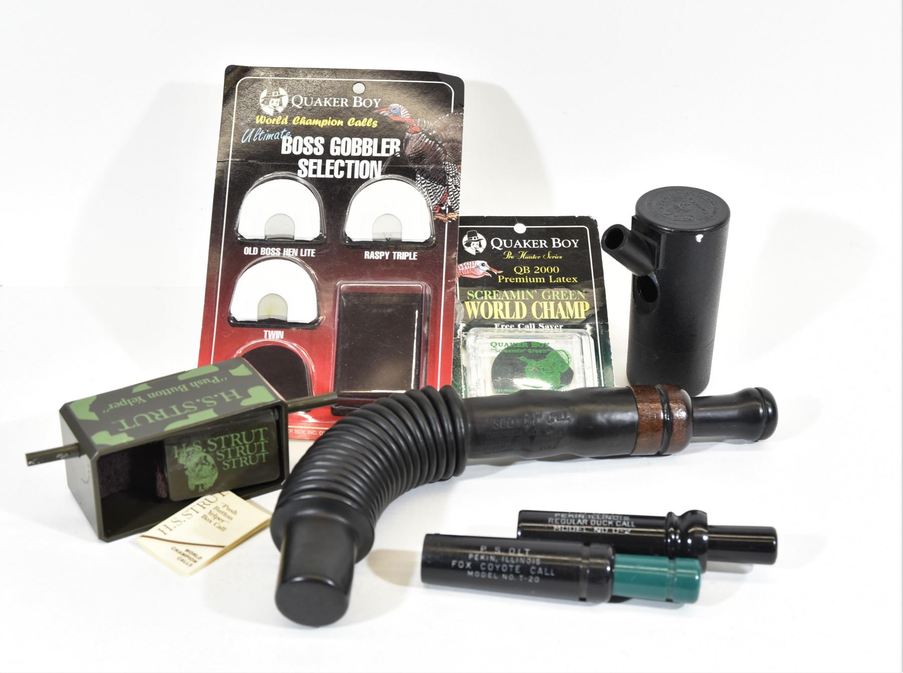 2 crow decoys no stakes, 4 mouth calls for turkey, plunger call, Scotch duck call, fox/coyote call P.S Olt duck call, owl hooter call, tripod stool