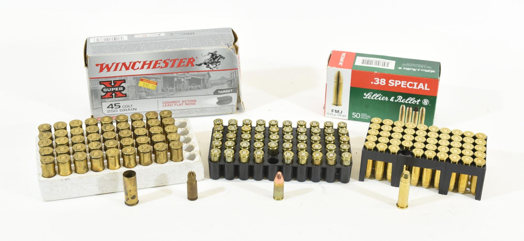 50 rnds Blazer 9mm, 50 rnds 38 spcl, 46 pcs of 45 long colt brass