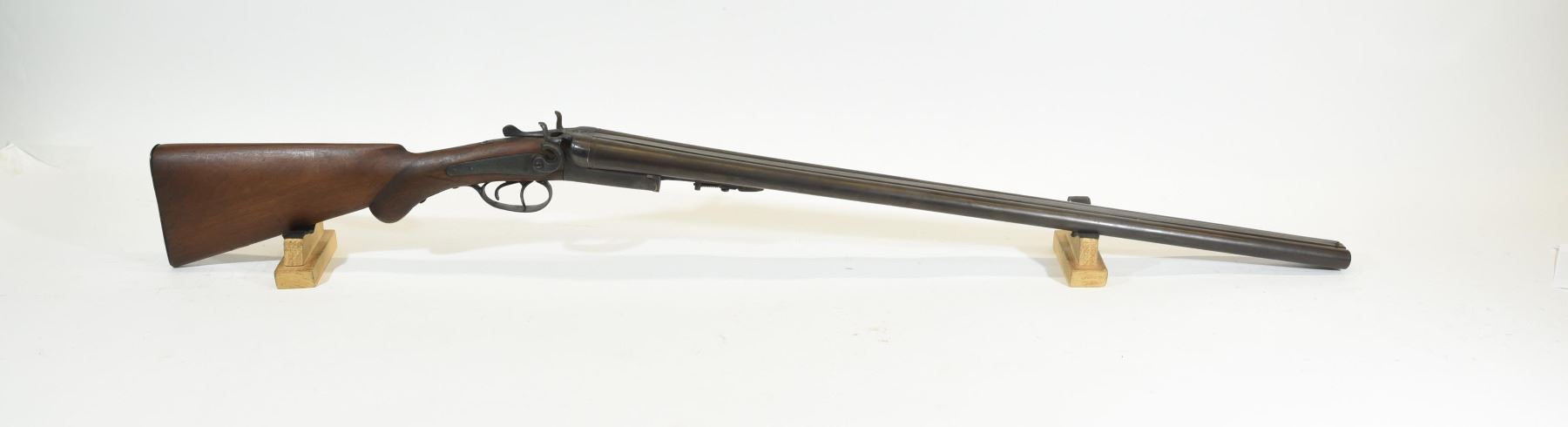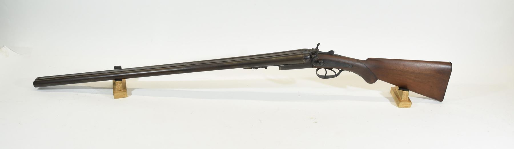Non-restricted, multi barrel, 12ga, 30" barrels with fixed chokes, SN 18339. Missing forearm, bluing is brown, bores pitted. Missing firing pins and nipples.