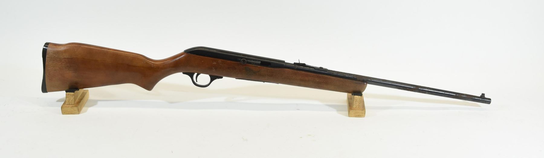 Non-restricted, semi auto, 22LR, 20" barrel, SN none. Wood has some scratches and losing finish, bluing has some deeply pitted areas, bore has pit marks. No mag.