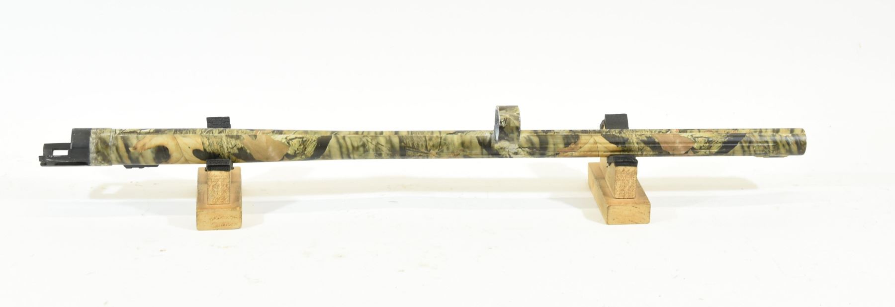 12 ga. 2 3/4, 3 and 3 1/2" shells, 24" fully rifled and fluted, has Williams rifle sights, camo pattern in good ondition, bore is good