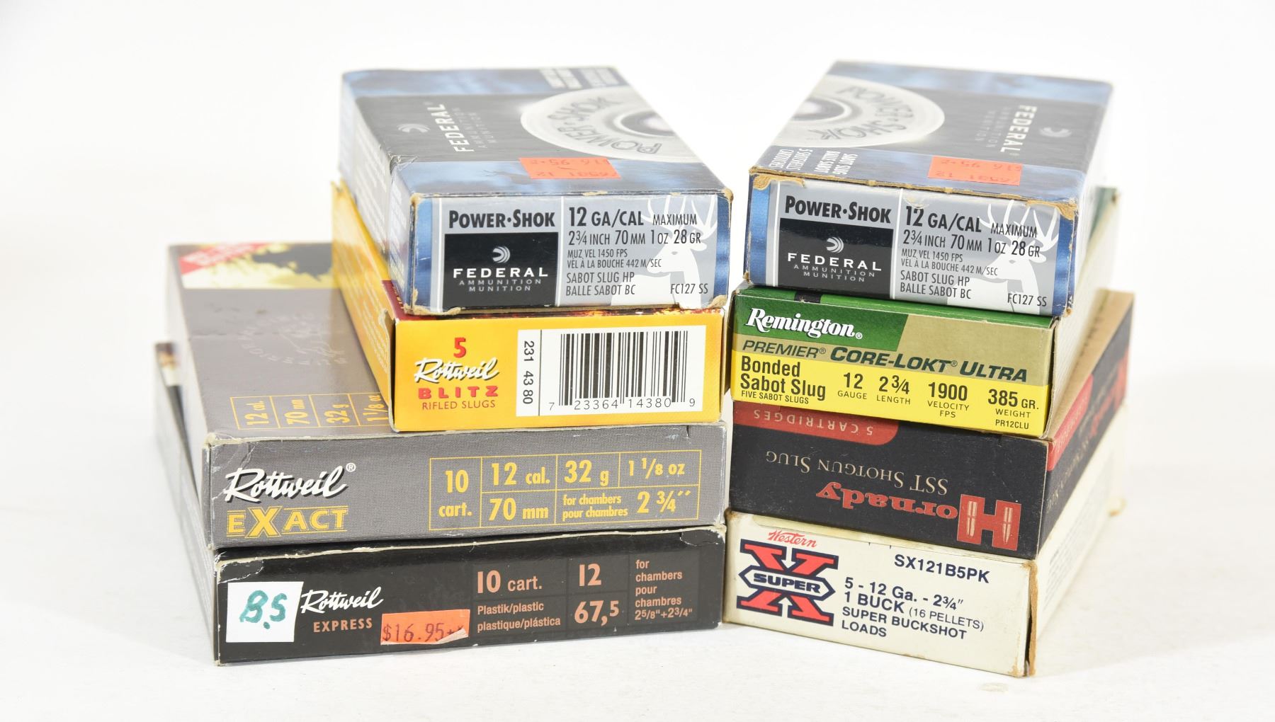 15 Rnds Rottweil Slugs, 10 Rnds Rottweil Buckshot, 10 Rnds Federal Sabot Slugs 28grn HP, 5 Rnds Hornady Slug 300grn FTX, 5 Rnds Western 1 BK, 5 Rnds Remington Sabot Slug 385grn.