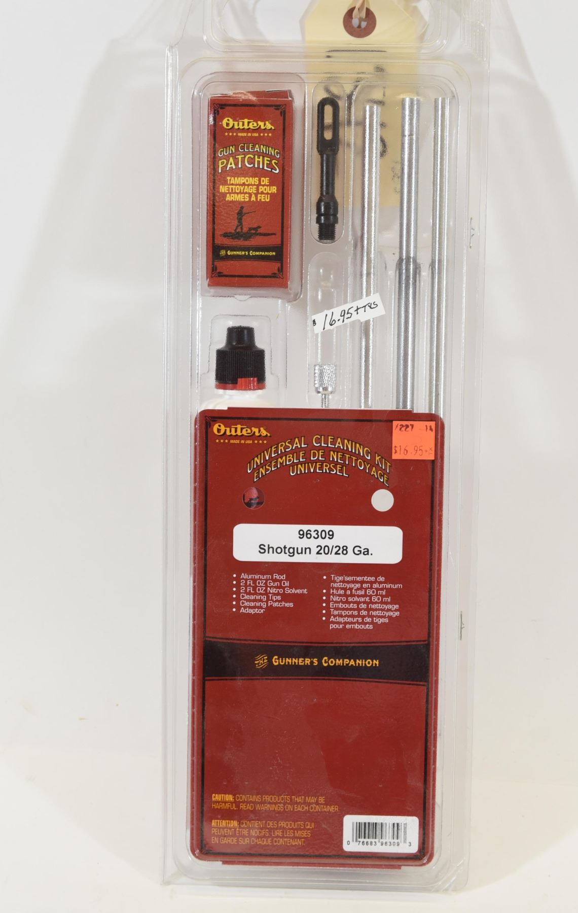 Outers Universal Cleaning Kit for 20/28GA Shotguns Includes: Aluminum rod, 2fl oz Nitro Solvent, 2fl oz Gun Oil, Cleaning Tips, Cleaning Patches, and Adapter.