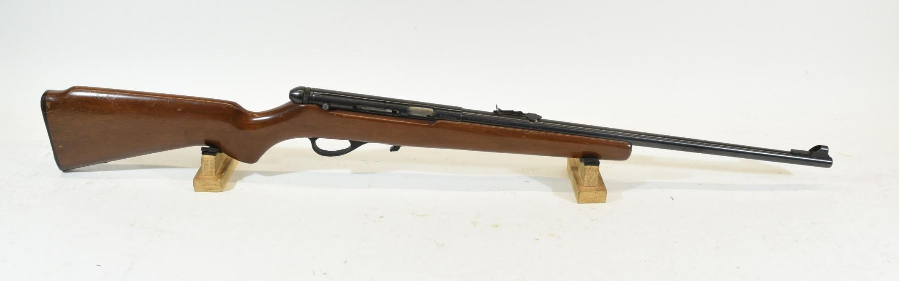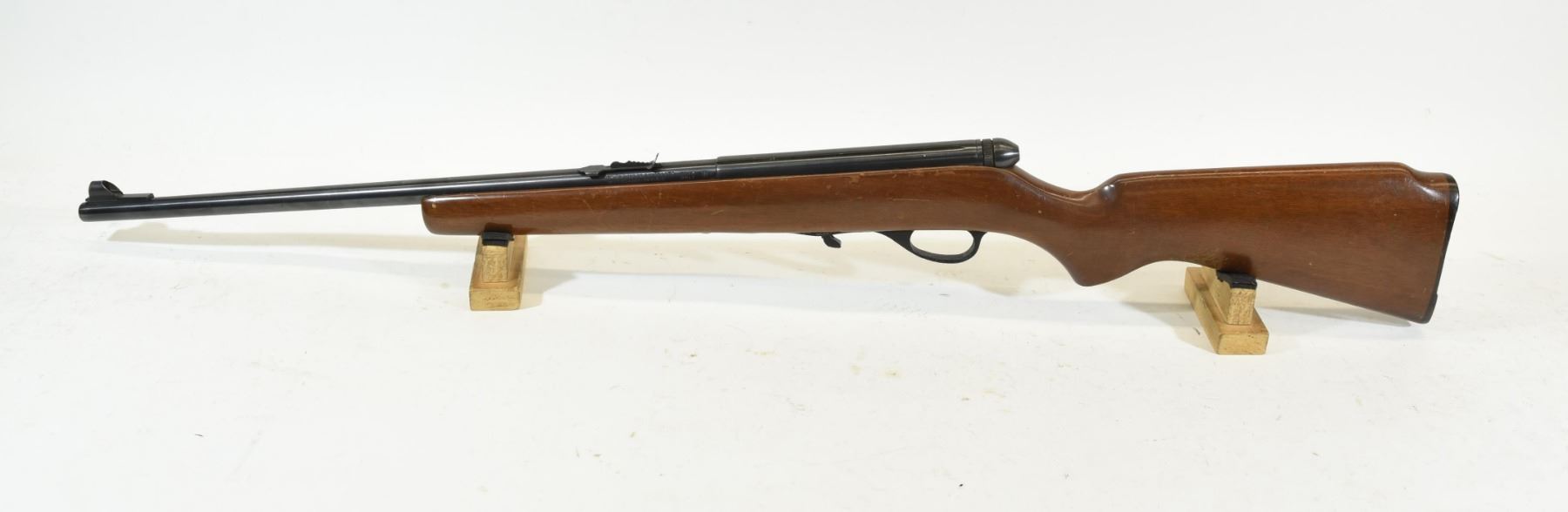 Non-restricted, semi auto, 22LR, 21" barrel, SN A558202. Wood has numerous marks and scratches, bluing has marks, bore good. Missing mag and charge handle.