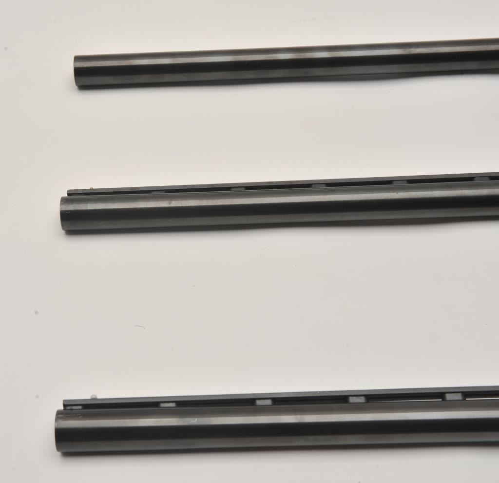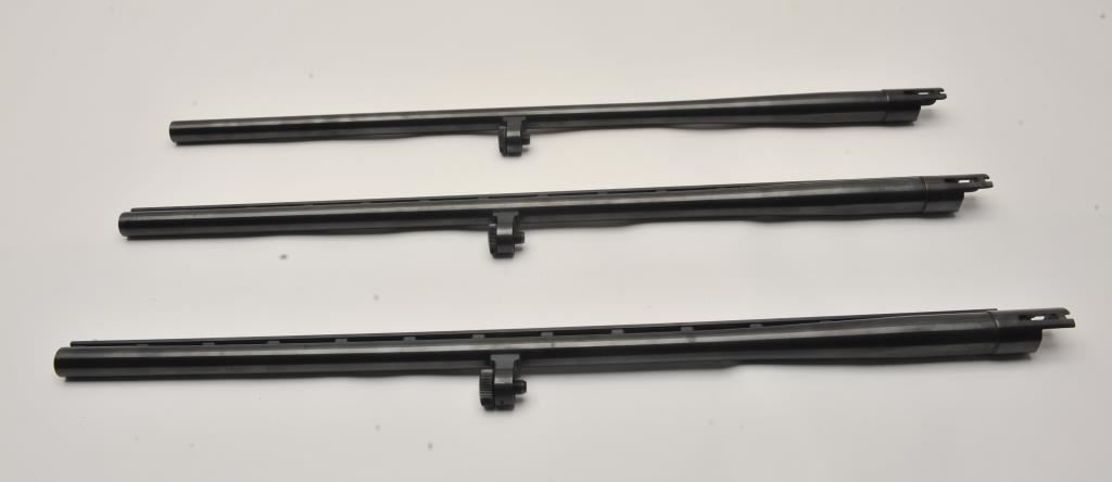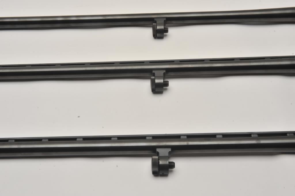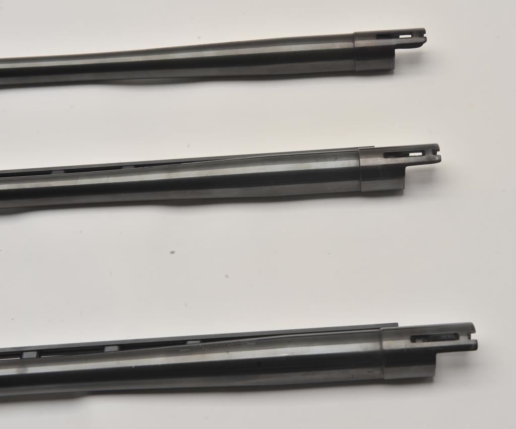 Lot of three Mossberg 12 gauge, 28” shotgun barrels. Two barrels are 28” in length with full-length ventilated ribs. The third is 28” in length with no rib. All three are in very good overall condition with good bores. Est.: $125-$250.