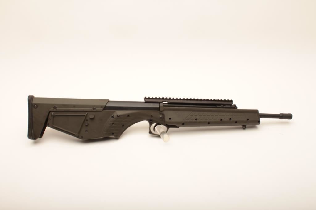 Kel-Tec RDB-C, #Z1E90, .223 cal., 20 1/2" barrel, blued finish with green polymer finish, with nylon sling. Rifle is in fine condition overall, with slight mars from use. Includes 2-10 round magazines and nylon boot. (Modern) Est. $600-1200