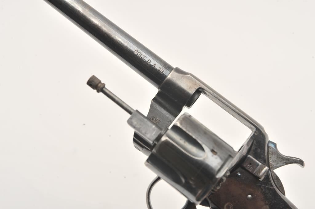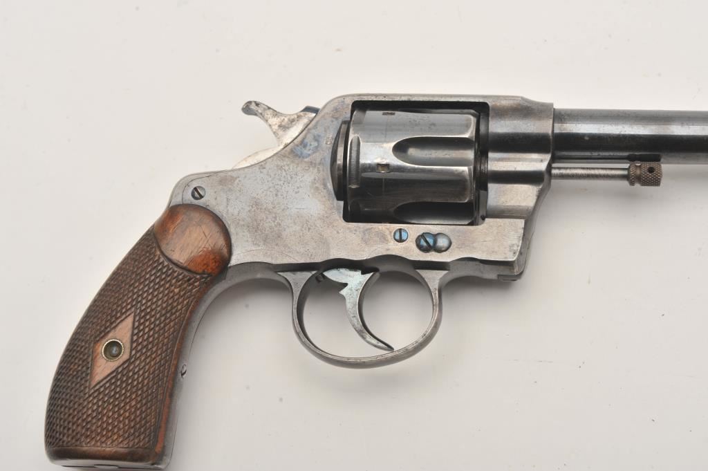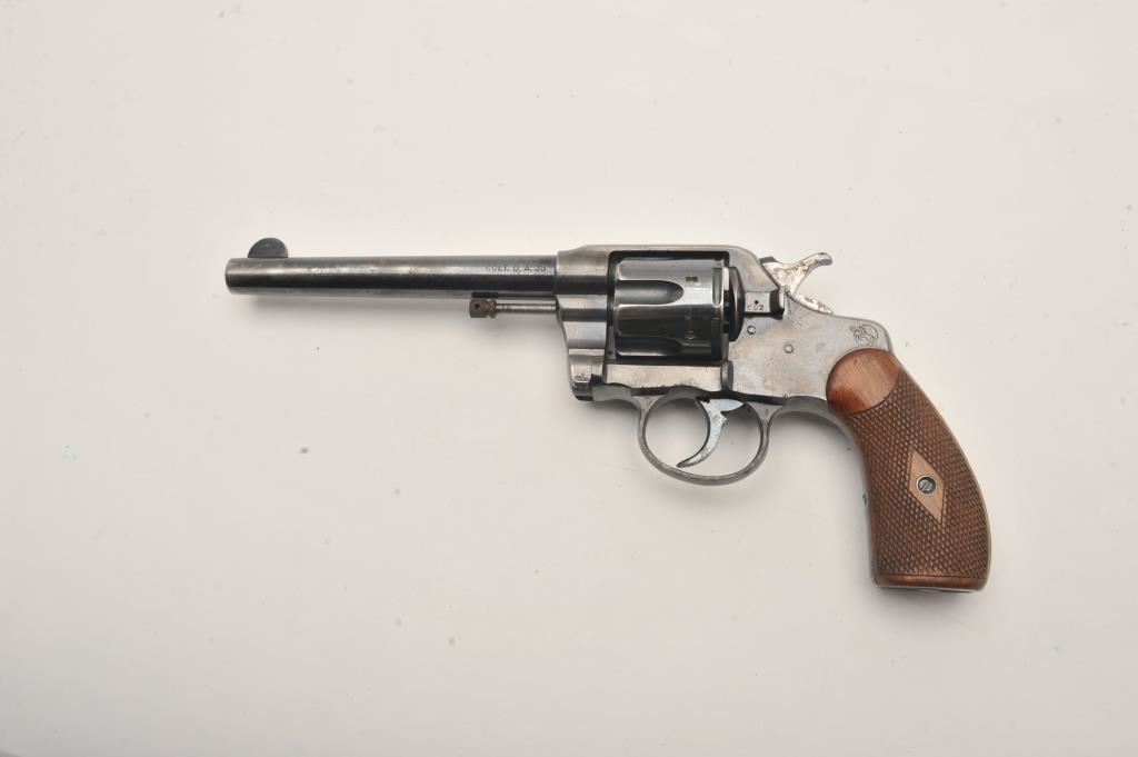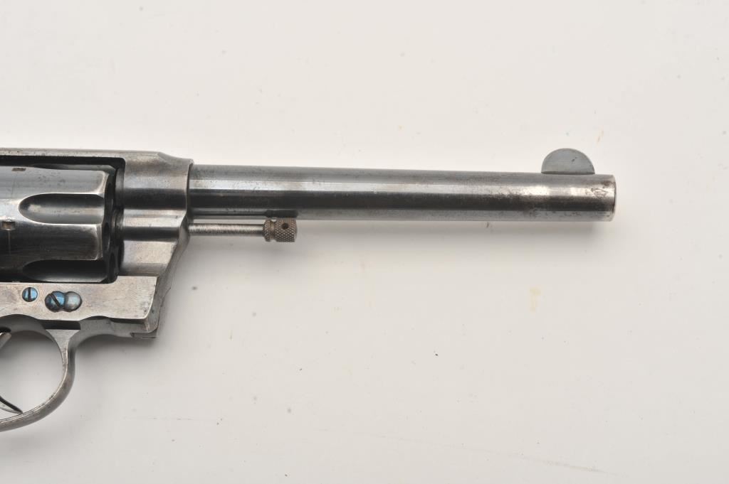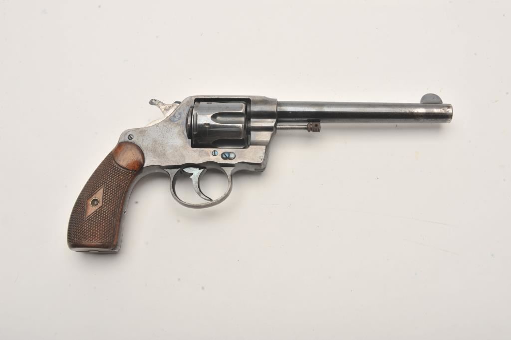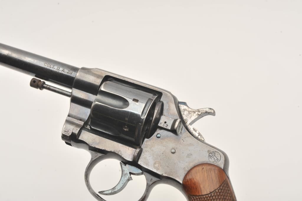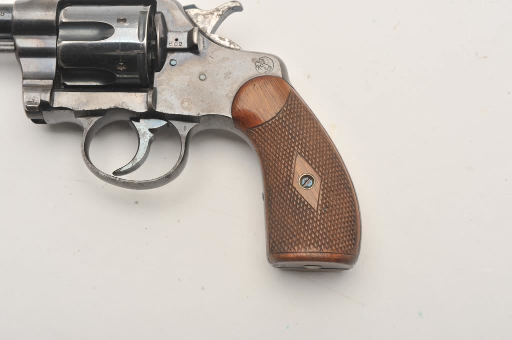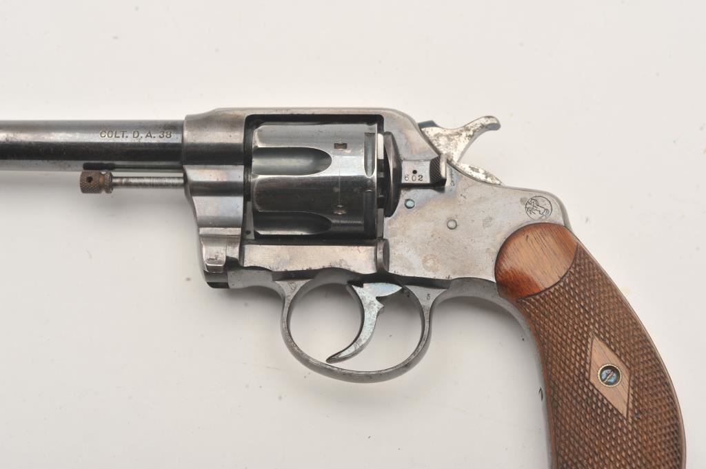 Colt Model 1905 Marine Corps Civilian Model, #10287, .38 Colt cal., 6" barrel, high polished blue finish, fixed sights, with checkered walnut grips. Revolver is in very good plus condition overall, showing the majority of it's original finish. The grips are very good plus with no chips or cracks. The bore and action are good. Very rare, with only 926 copies made for the civilian market. (C&R / PPT) Est. $1400-2800