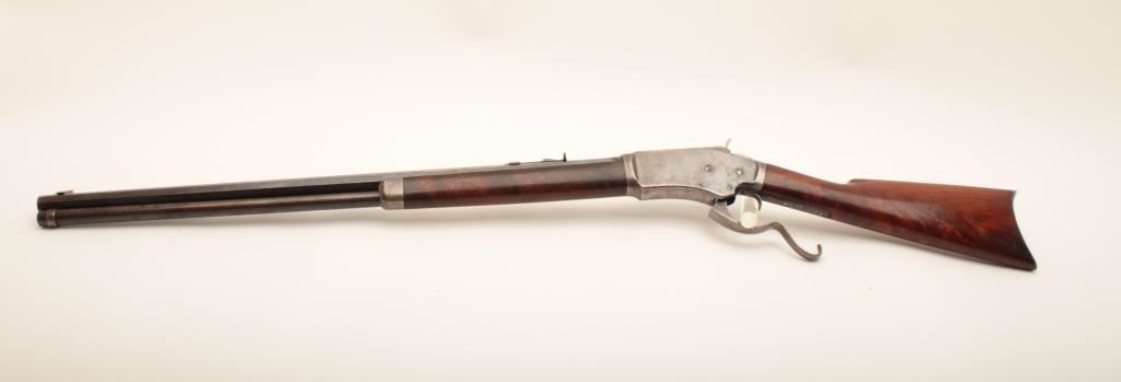 Whitney Kennedy rifle, #E793, 28" octagon barrel, 40-60 cal. full mag, with nicely figured stock. Rifle is in very good plus condition overall, retaining 40-60% original finish, turning to a brown parina, bore is fair, action is good. Wood is very good plus as refinished. (Antique) Est. 1400-2800