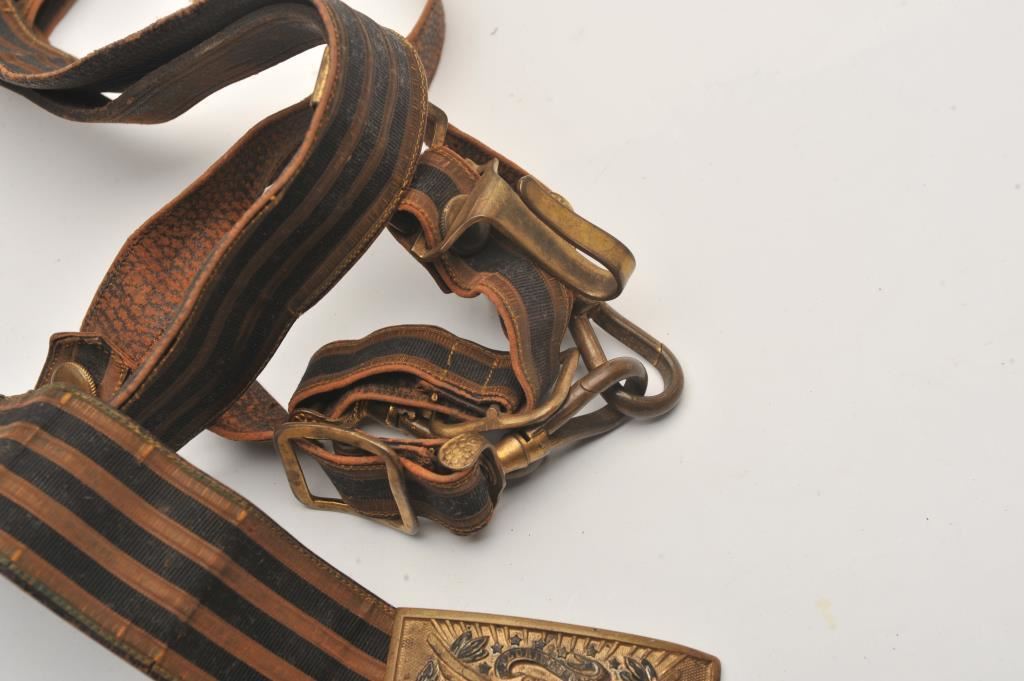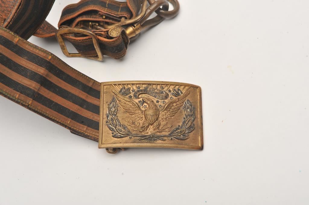 U.S. 1872 Cavalry Officer’s belt, buckle and hangers. Est.: $175-$350.