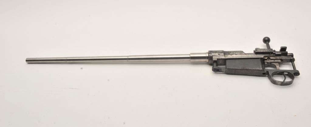 Mexican Mauser barreled action by FN, #23863, .30 cal., 22 1/4" barrel, blued finish. Action is in good condition, barrel is new and in the white, unknown actual caliber, possibly .308. (C&R) Est. $250-500