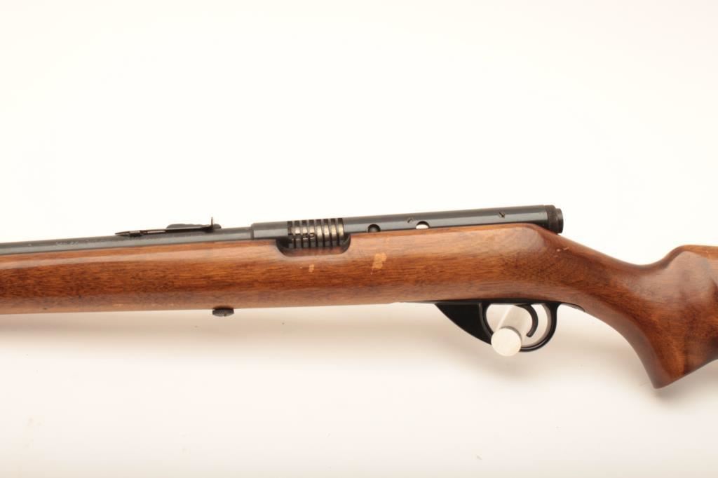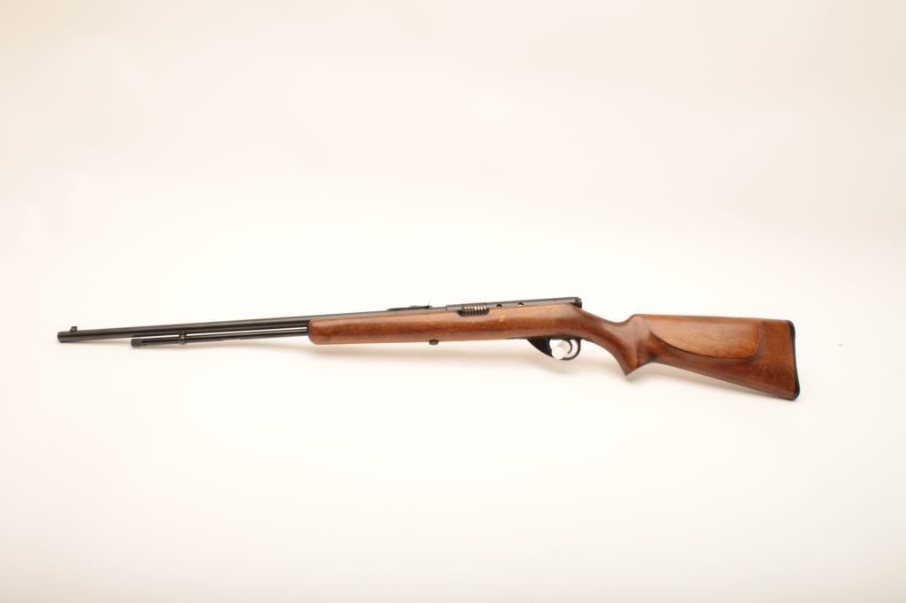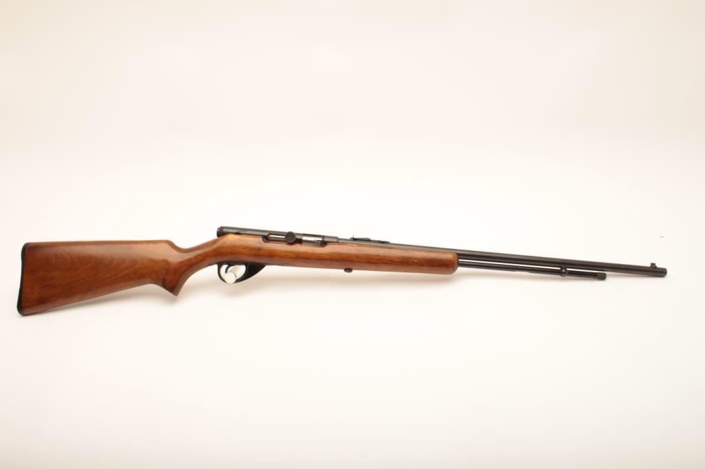 Sears Ranger 101.16 #NSNV, .22 LR cal., 24" barrel, blued finish with smooth walnut stock. Rifle is in good condition overall, showing 96-98% original finish. Stock is good with no chips or cracks, some flaking of varnish starting. Bore is good, action is good. Receiver was drilled and tapped for a receiver sight which has been removed. (C&R) Est. $100-200