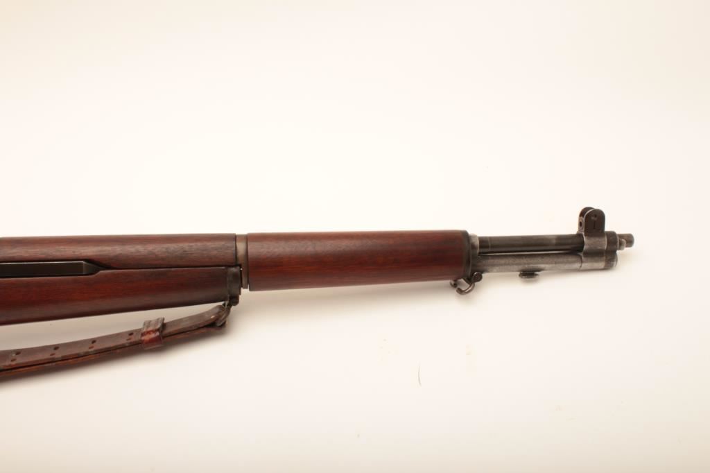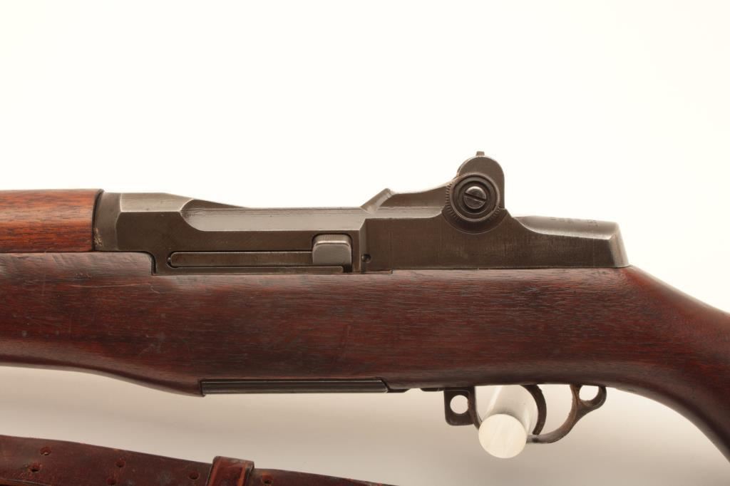 US M1 Garand semi-automatic rifle by Springfield Armory, .30 caliber, Serial #1537158. The rifle is in good overall condition with a 24” SA barrel dated 12-48. The metal surfaces retain the majority of their military finish with thinning of finish at the muzzle. The smooth wood stock is in good condition with small mars and handling marks and no visible cartouches. The butt stock includes sling swivels, period leather military style sling and ends with a steel butt plate with trap. The bore is good, the action is crisp and the markings are sharp. Est.: $700-$1,400. (C+R).