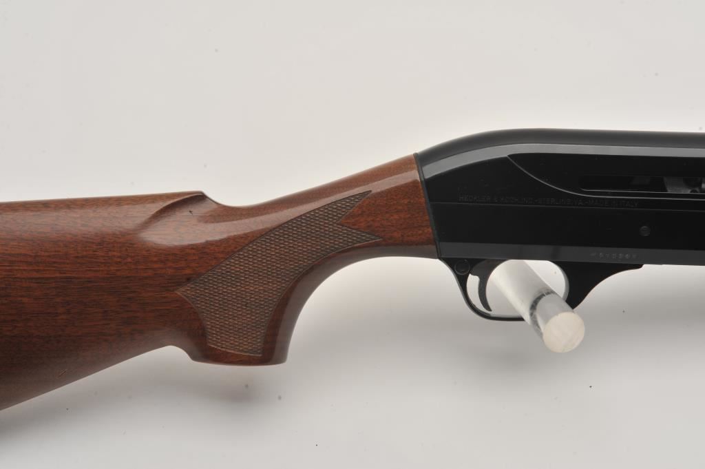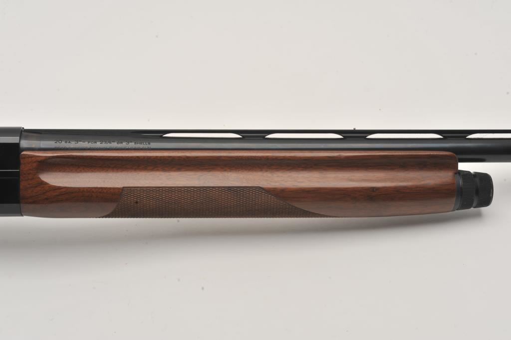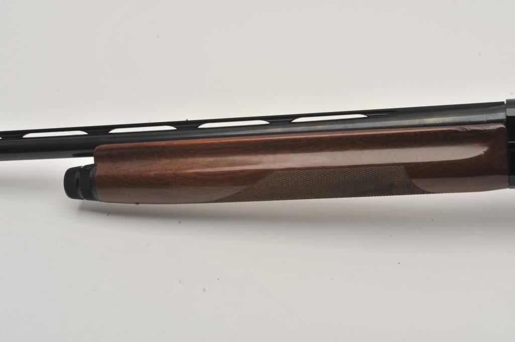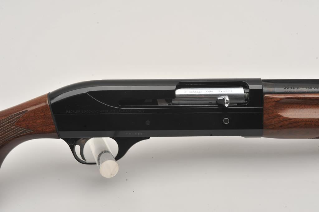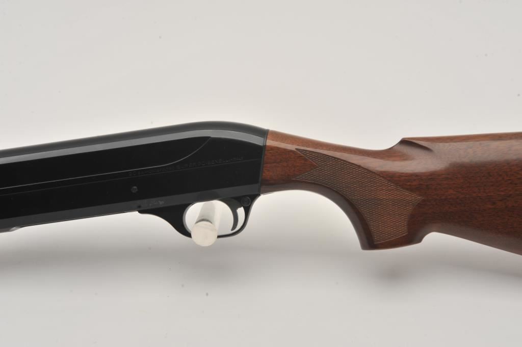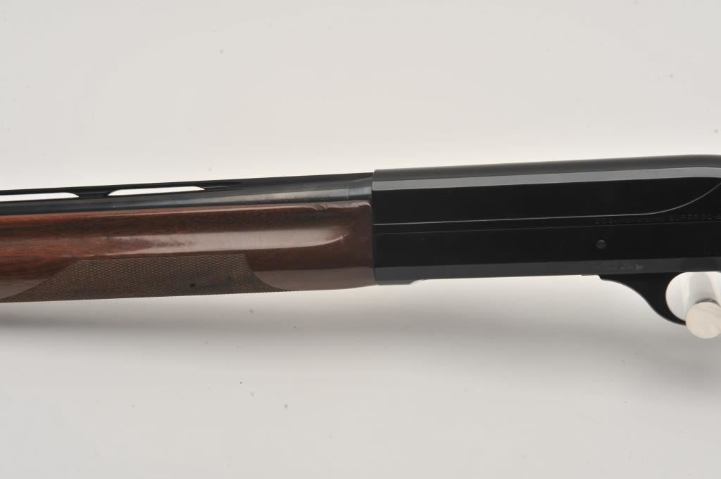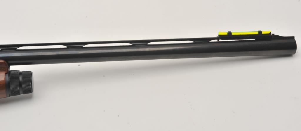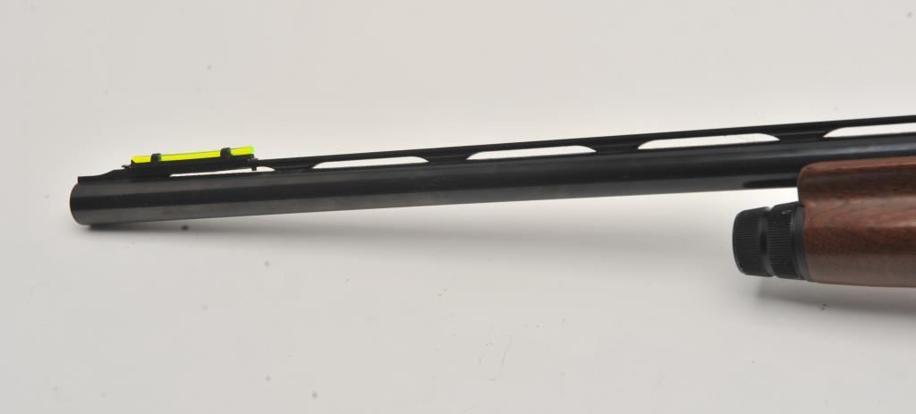 Benelli Montefeltro Super 90 semi-automatic shotgun, 20 gauge, Serial #N013301. The shotgun is in very good overall condition with a 26” barrel with a full-length ventilated rib and Hi-Viz front sight. The metal surfaces retain the majority of their blue finish with small mars and scratches from carry and use. The checkered wood stocks are in very good condition with small mars and dents consistent with field use. The butt ends with a Benelli marked ventilated rubber recoil pad which provides a 14 ½” LOP. The bore is good, the action crisp and markings are sharp. Est.: $700-$1,400. (Modern).
