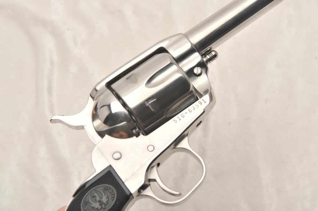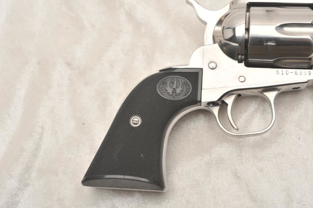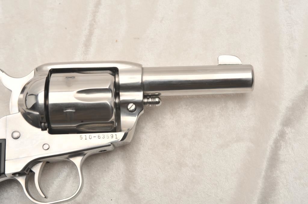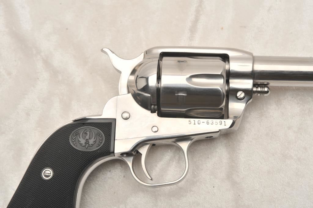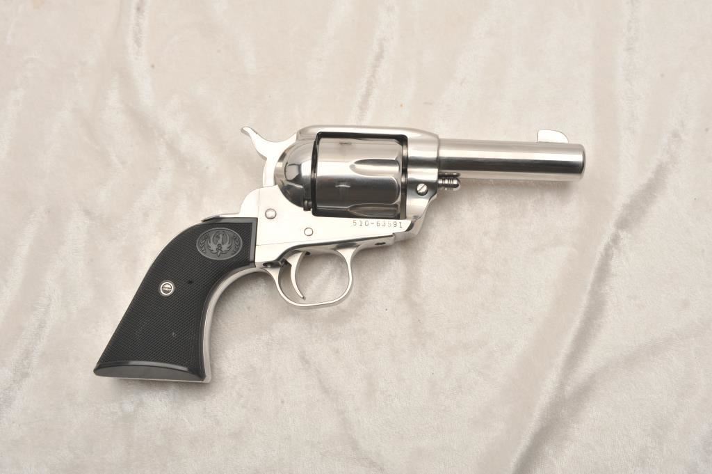 Ruger New Vaquero, #510-63591, .357 Mag, 3" barrel, stainless, fixed sights with hard rubber logo grips. Revolver is in very good to near excellent condition overall, excellent action, fine bore, very good grips. Shows just minimal handling marks. (Modern) Est. $400-800