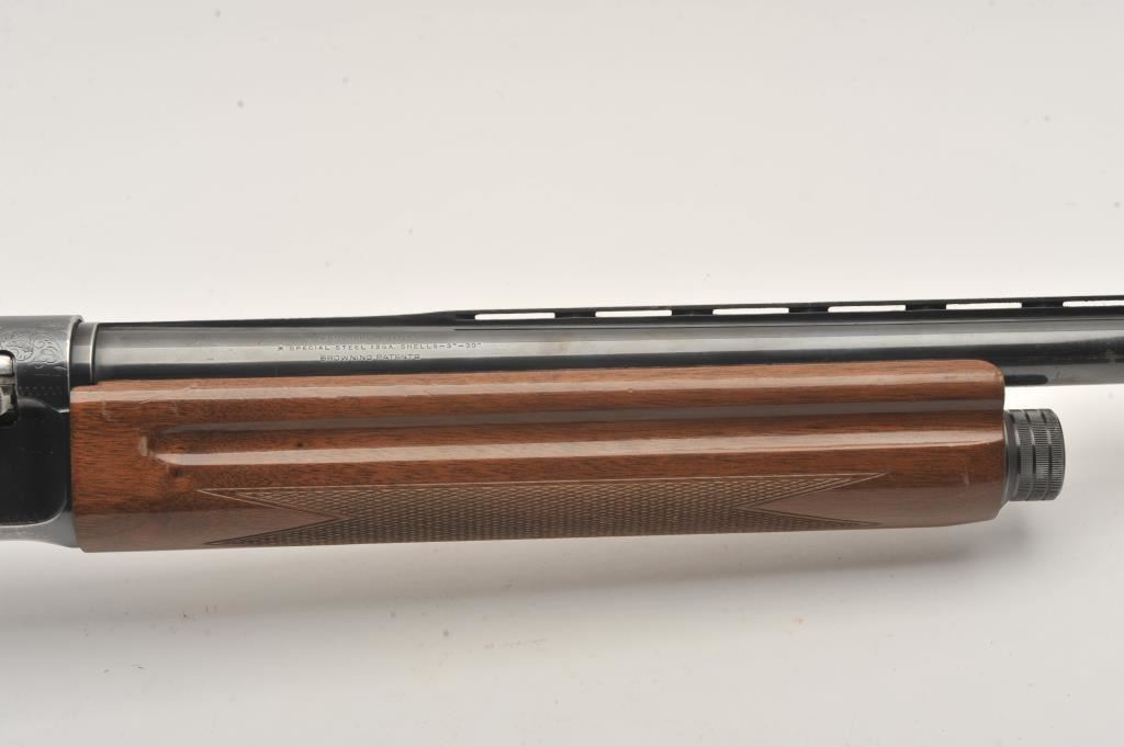 Browning Auto 5 Magnum 12GA (Japan) with 30” barrel choked full, S/N 04677PY151. Browning recoil pad. Good used condition. Wear to blue with 50%-70% remaining. Good wood plus with numerous dings, mars and scratches from use in the field. (Modern) Est.: $250-$500