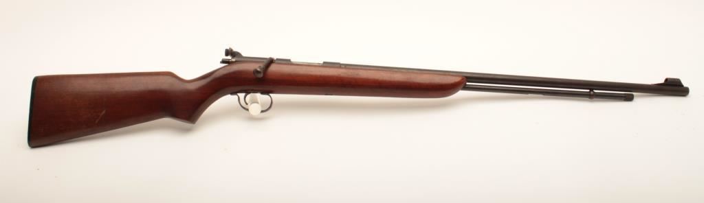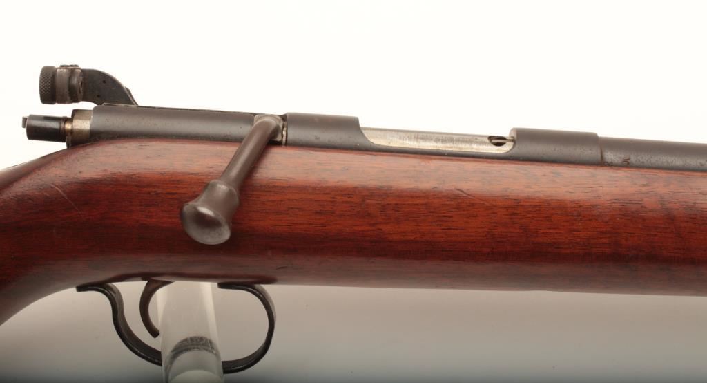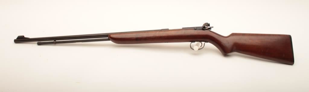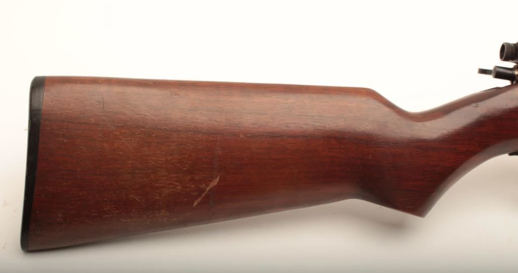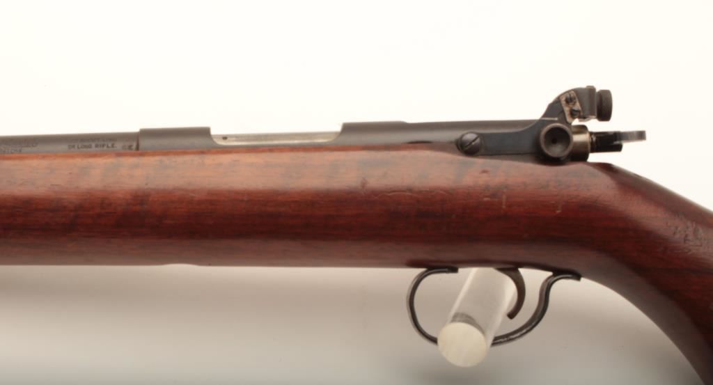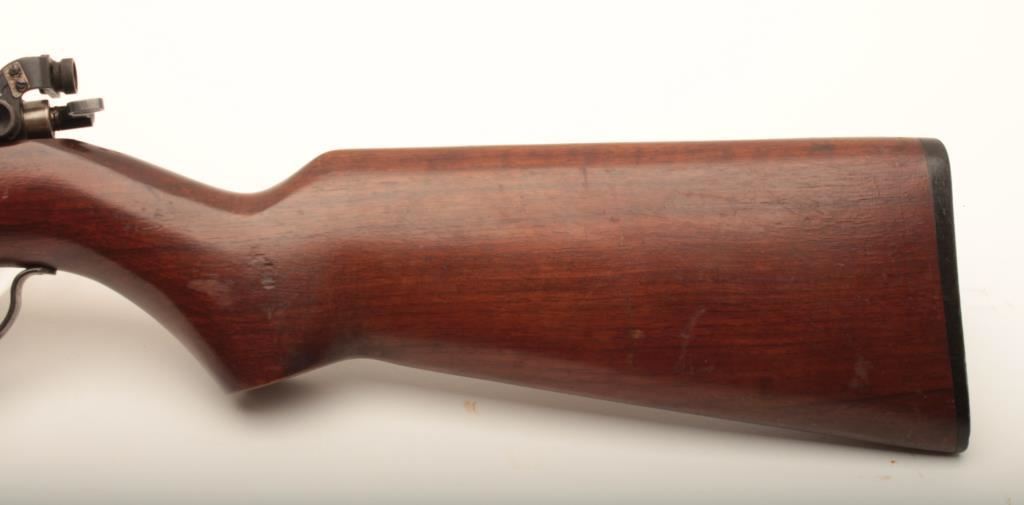 Remington 341-P Sportmaster #NSNV, .22 LR cal., 24 1/4" barrel, blued finish, receiver mounted peep sight with smooth walnut stock. Rifle is in good condition overall, showing the majority of it's original finish, stock is good with no chips or cracks. Bore is good, action is good. (C&R) Est. $150-300