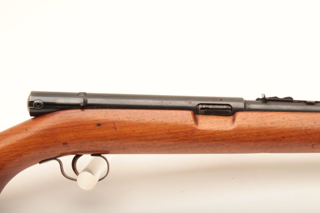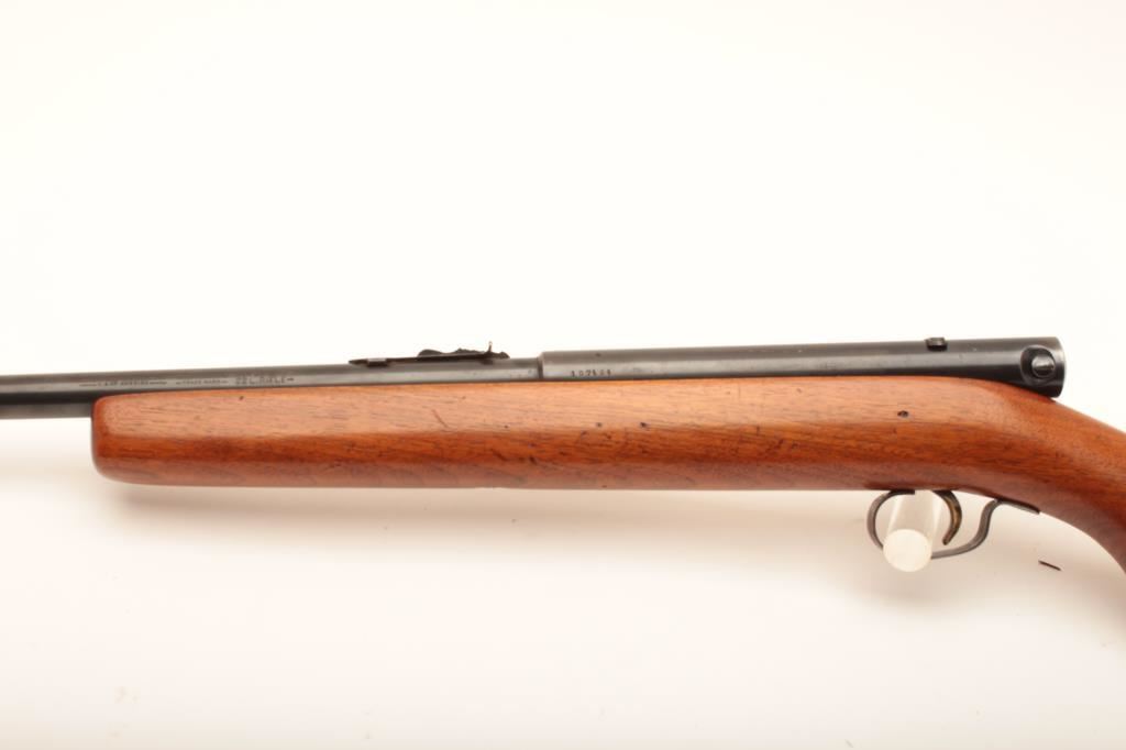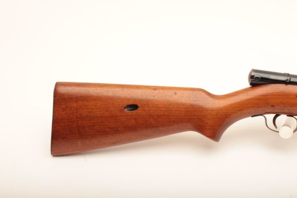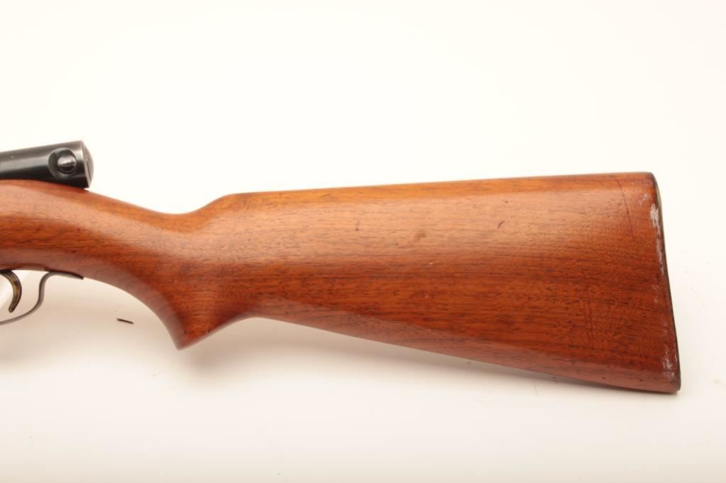 Winchester Model 74 #107484, .22 LR cal., 24" barrel, blued finish with smooth walnut stock. Rifle is in good condition overall, showing the majority of it's original finish, stock is good with no chips or cracks. Bore is good, action is good. (Modern) Est. $175-350