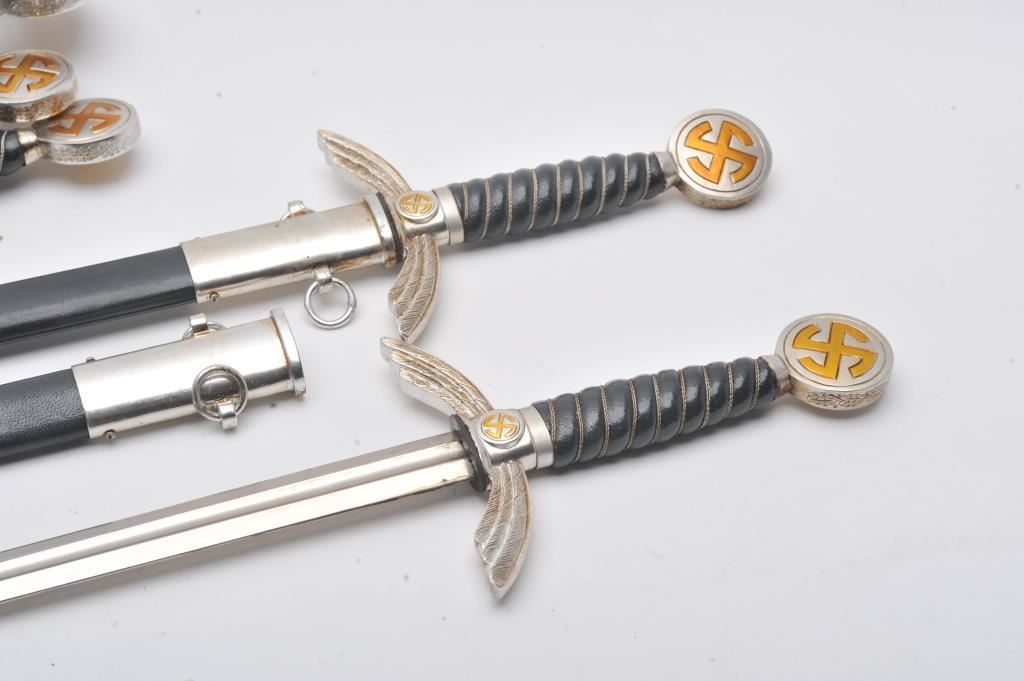 Lot of high quality reproduction 1st model Luftwaffe swords. Excellent copies that are hard to detect. Great for WWII aviation display, as originals are fetching over $1200 each. Est. $600-1200