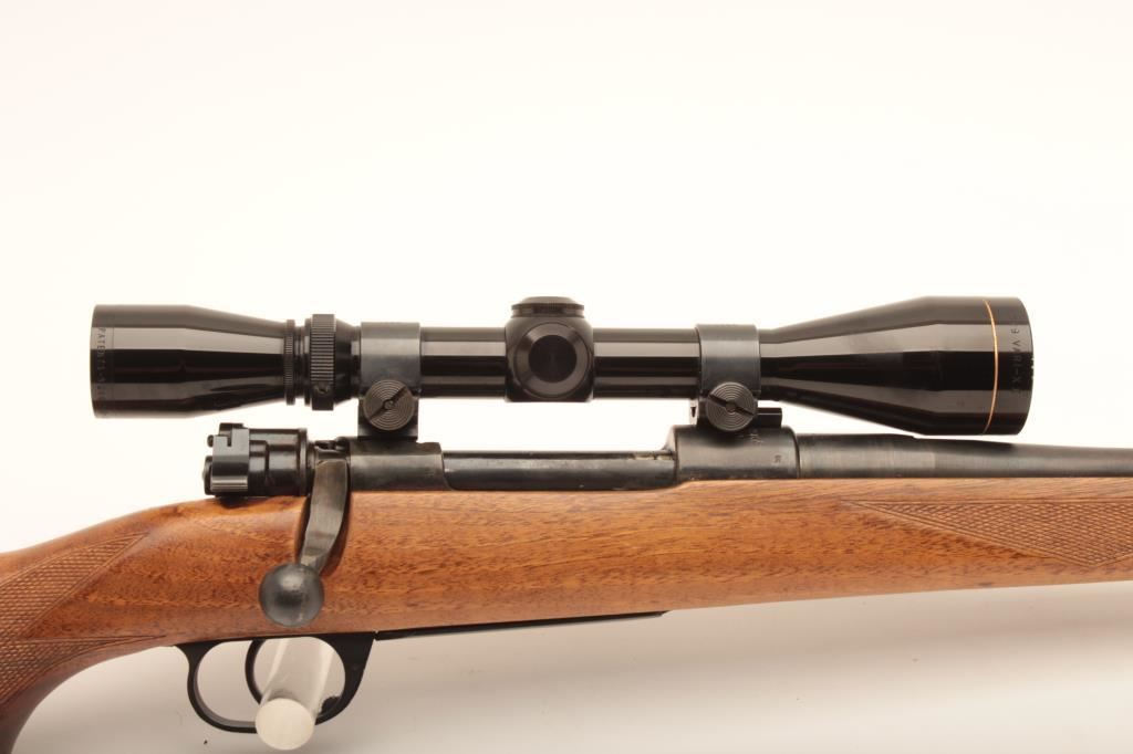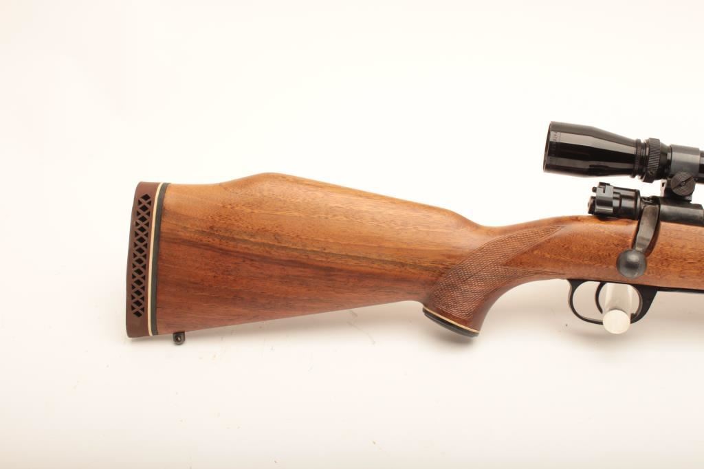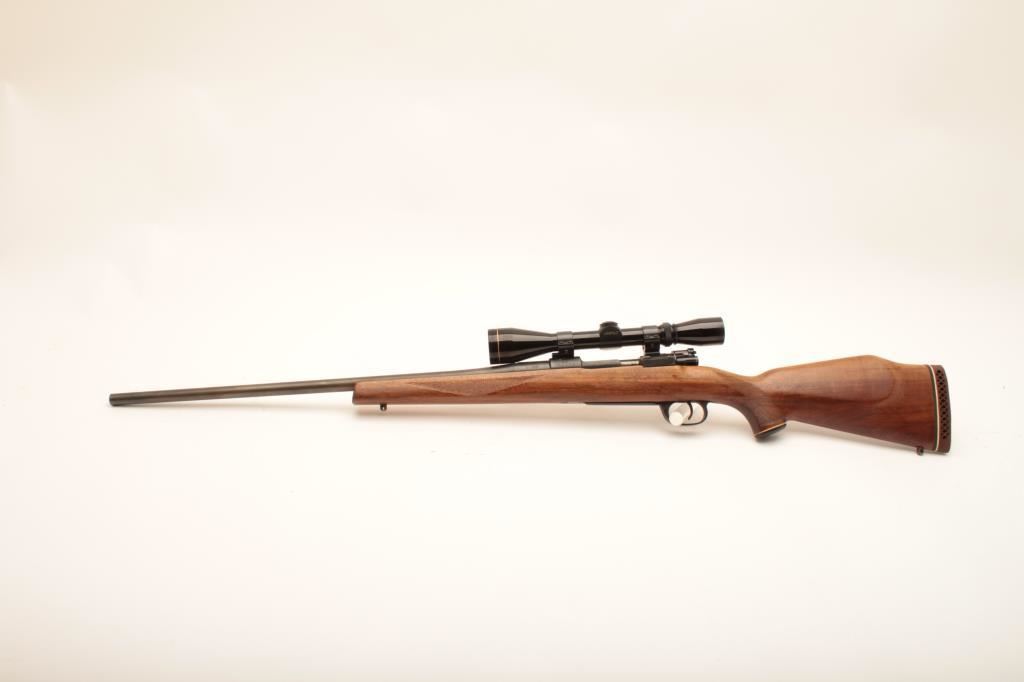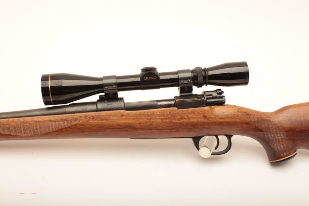 Sporterized CZ VZ-24, #682U2, rechambered to .30 Gibbs, 25" barrel, blued finish, Monte Carlo style stock with rubber recoil pad. Rifle is in good to very good condition overall, showing the majority of refinish. The receiver has been drilled and tapped for a scope mount. Stock is very good overall. Bore is minty, action is good. Mounted with a Leupold Vari X II 3-9 scope with good optics. (C&R) Est. $300-600