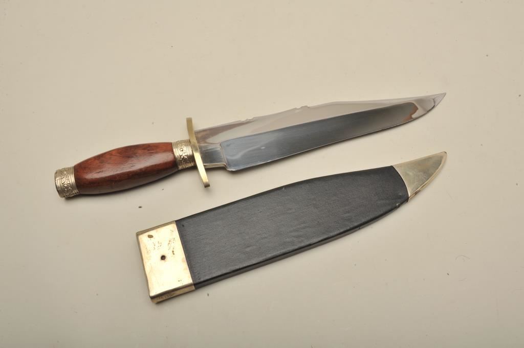 1. James and Lowe England 1960s gifted by Bill Williamson to S.B.A.C. Les Gillman 15.25" overall, many of these have been sold as genuine but no such maker. Near fine. 2. Unmarked spear point with horn grip 14" overall. Very good styling and condition. 3. Half horse half alligator 14.5" Pakistan. 4. Monson marked spear point. Faux grip. Sharpened.