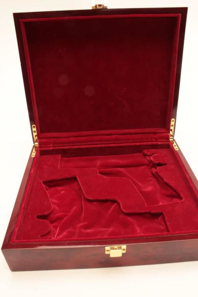 Finely constructed custom deluxe wood double casing for semi-automatic pistols, possibly for Combat Commander style pistols. Est.: $100-$200.