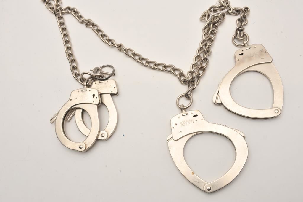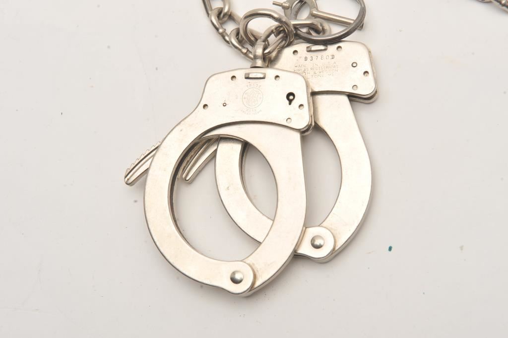 Pair of custody chained Smith & Wesson leg irons and handcuffs. Est.: $100-$175.