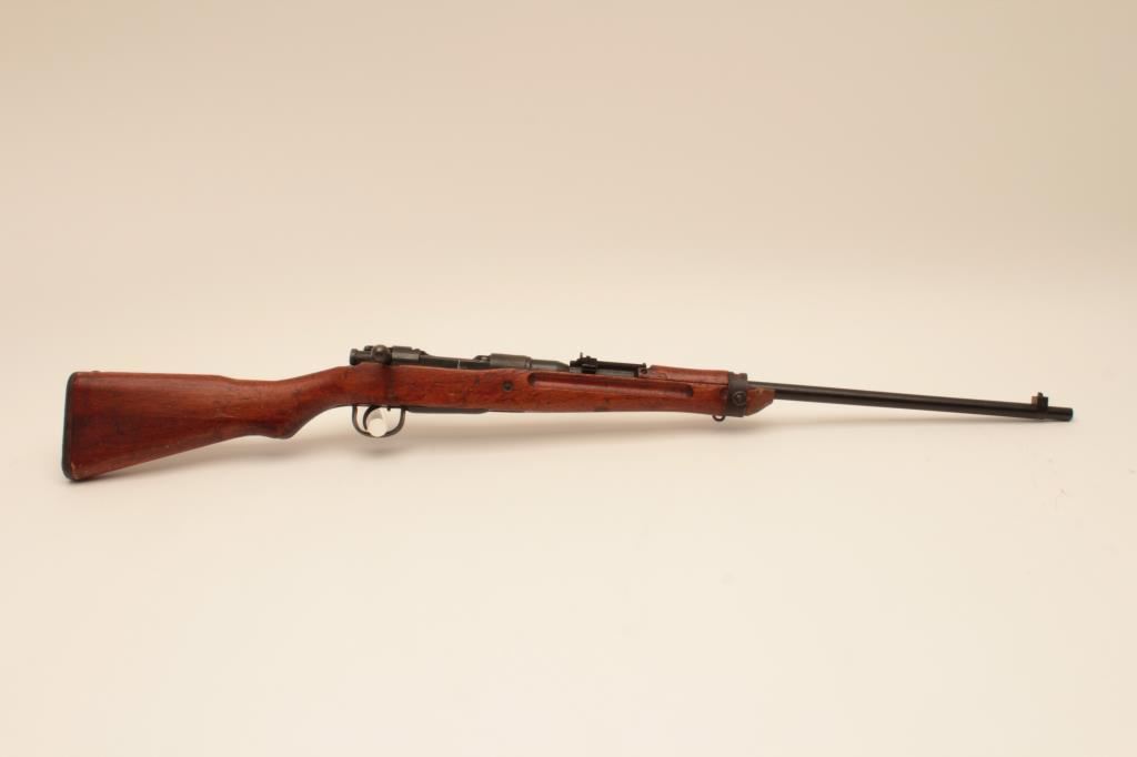 Late War Japanese Arisaka 7.7mm issue rifle with mum ground, stock cut, late front sight and rusty butt plate, S/N 88890. The bolt, internal parts and firing pin is missing along with floor plate and spring. As parts only. Fair overall. Est.: $25-$50