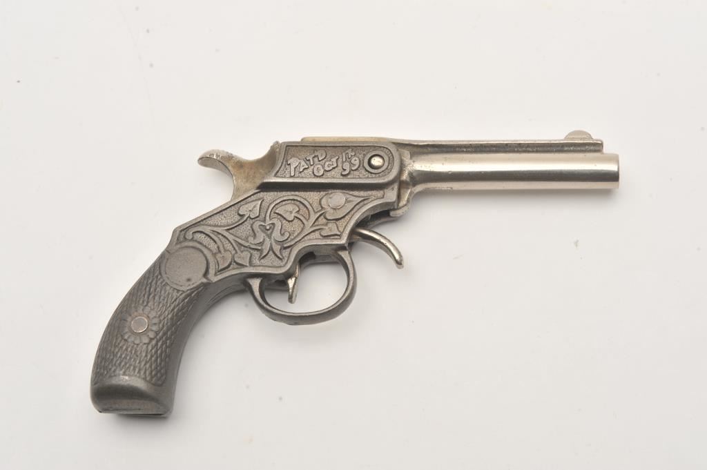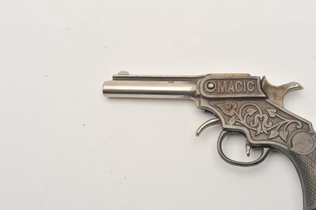 Vintage metal cap pistol marked “MAGIC”; overall good condition with marking on right side of frame “Pat’d Oct. 12, 99”. Est.: $50-$100.