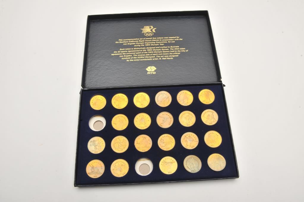 Los Angeles 23rd Olympic (1984) Commemorative coin set (24 coins) in Olympic Commemorative display case. Est.: $50-$75.