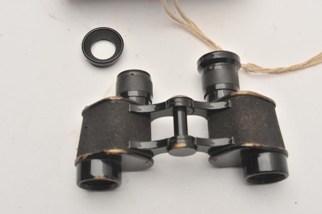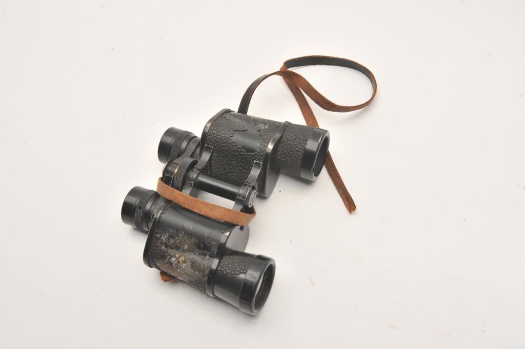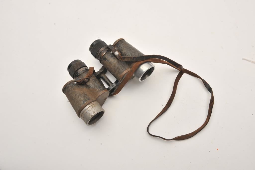 Binocular lot as described. 1 marked “SKK Tokyo” numbered 10173. Near fine. 6x24 with case. WWII era. Chas. Wohler, Kassel. Fair only and early German pair found by collector in Sicily. Possibly African Corps. 3 pieces. Est.: $200-$400