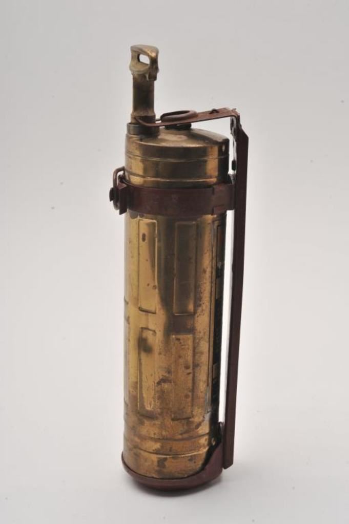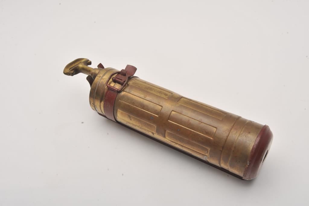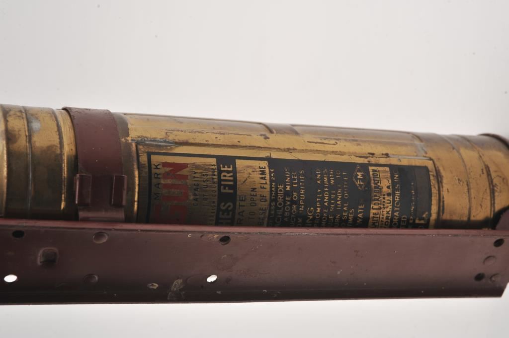 Vintage Fire Gun No. 0 Brass fire extinguisher with mounting bracket, approximately 13.5” overall. Est.: $50-$75.