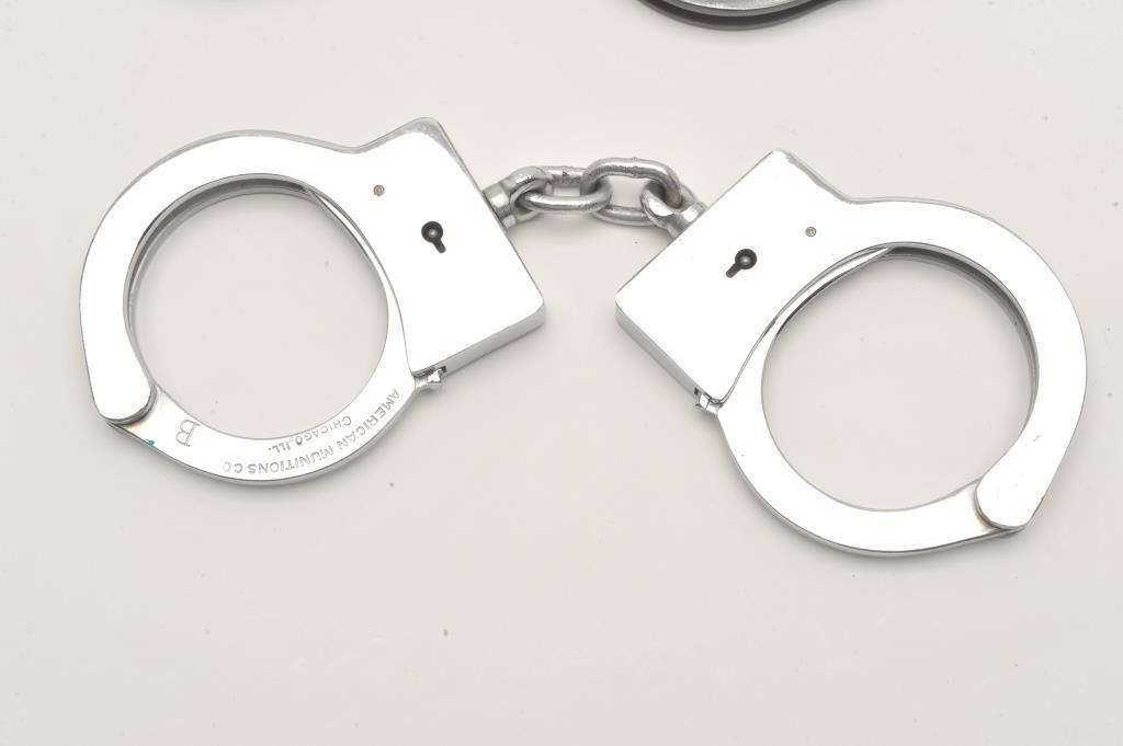 Two pair of handcuffs (no keys); one pair Peerless, the other pair American Munitions Co. Est.: $100-$150.
