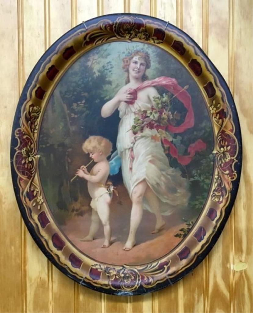 Beautiful Victorian scenic oval Beer Tray by H.D. Beach Coshocton OH. 16 1/2” X 13 1/2”. Estimate $200-$400