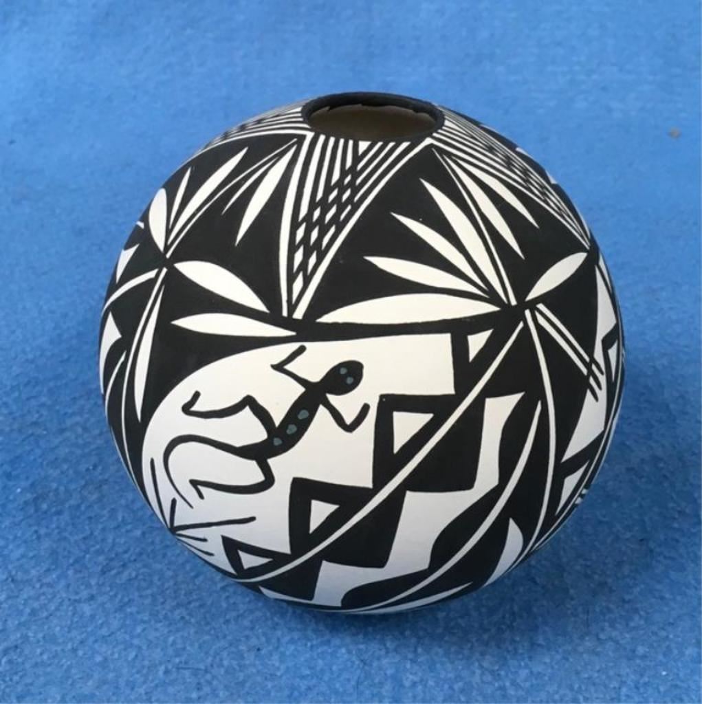 Acoma Indian pot, artist signed L.C. 4 1/2 tall. Est.:$200-$300.