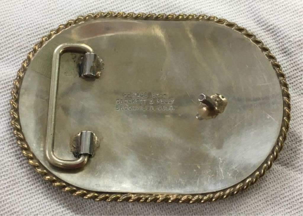 Engraved silver belt buckle by Crocket & Kelly. Est.:$200-$300.