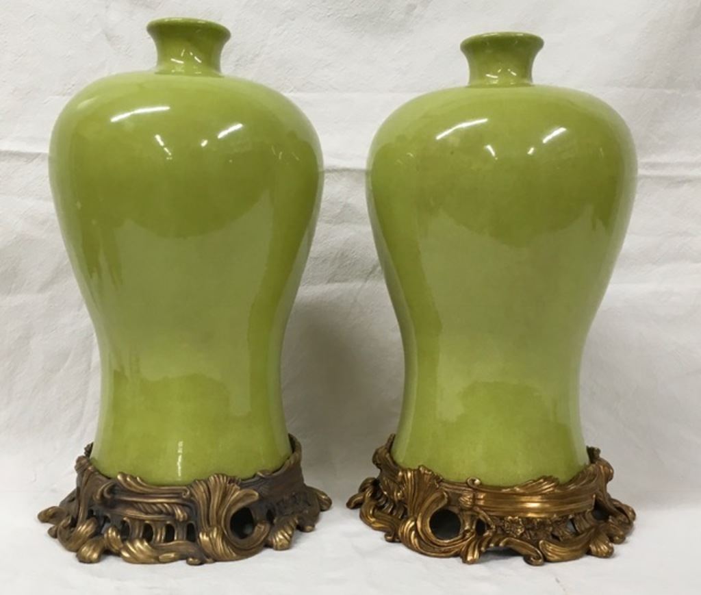 Pair of Meiping 20th century Bronze Mounted Porcelain Vases. 17 1/2” Tall Est:$200-400