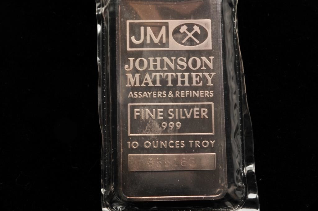 10 oz. Johnson Matthey silver bar. Numbered and marked “Fine Silver 999”. Estate consigned. Est.: $140-$220