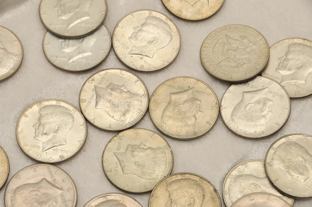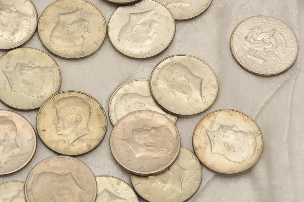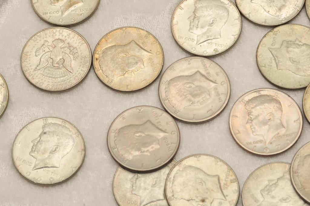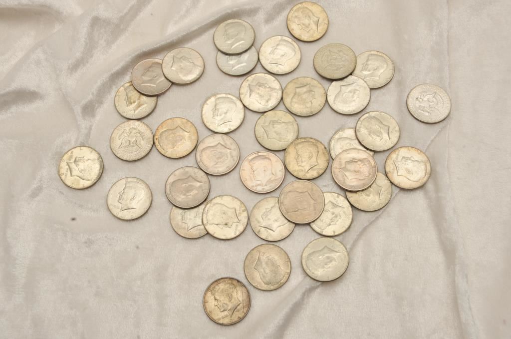 36-Kennedy Half Dollars clad with '66-70's dates. Circulated. Est:$25-50